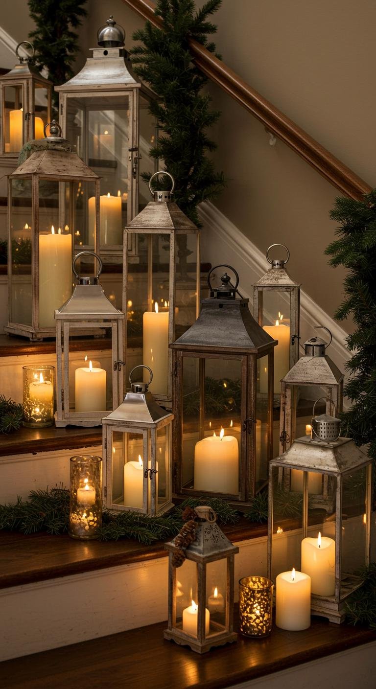 Add a touch of sophistication to your staircase with elegant candle lanterns that create a warm, inviting glow.
