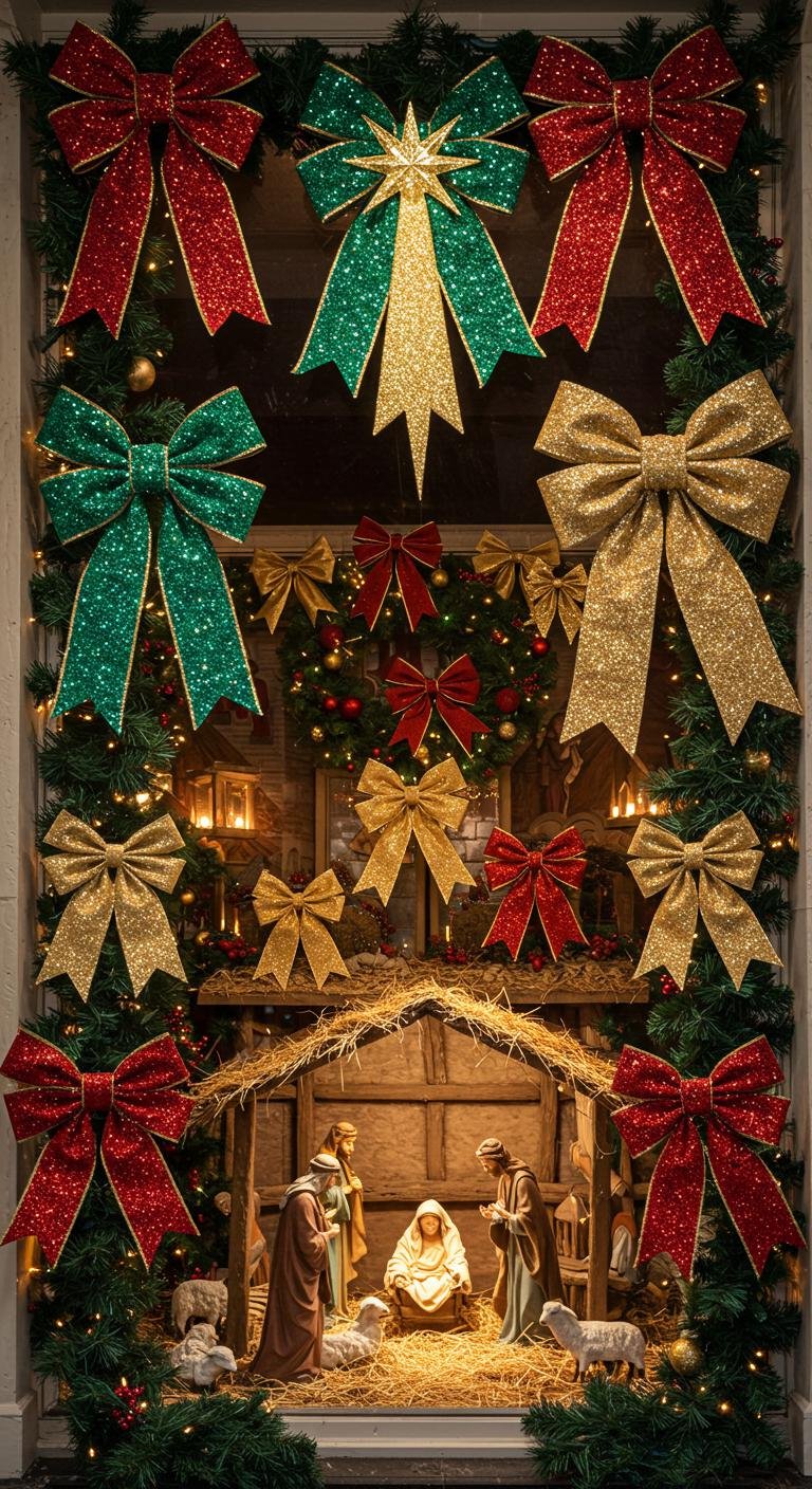 After immersing yourself in the heartfelt imagery of nativity scenes, it’s time to add a touch of sparkle with glittering holiday bows.