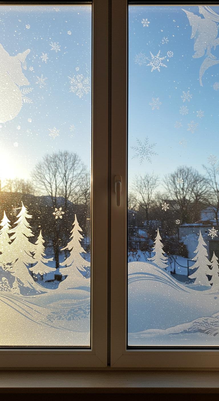 Transform your windows into stunning works of art with frosted glass effects that evoke a winter wonderland.