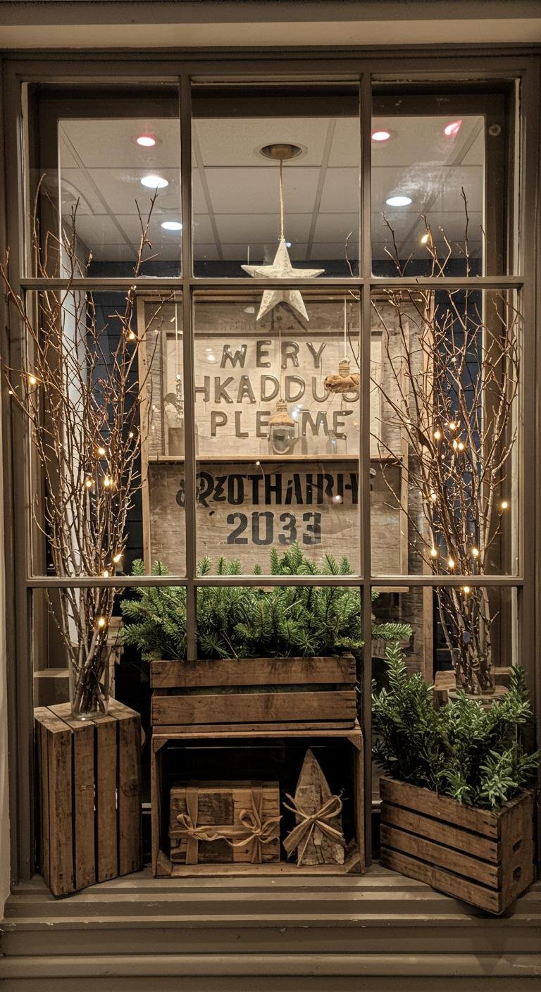 Rustic wooden elements bring a charming, earthy vibe to your holiday window decorating. Incorporate wooden accents like handmade ornaments or a weathered wooden sign to infuse rustic charm into your space.