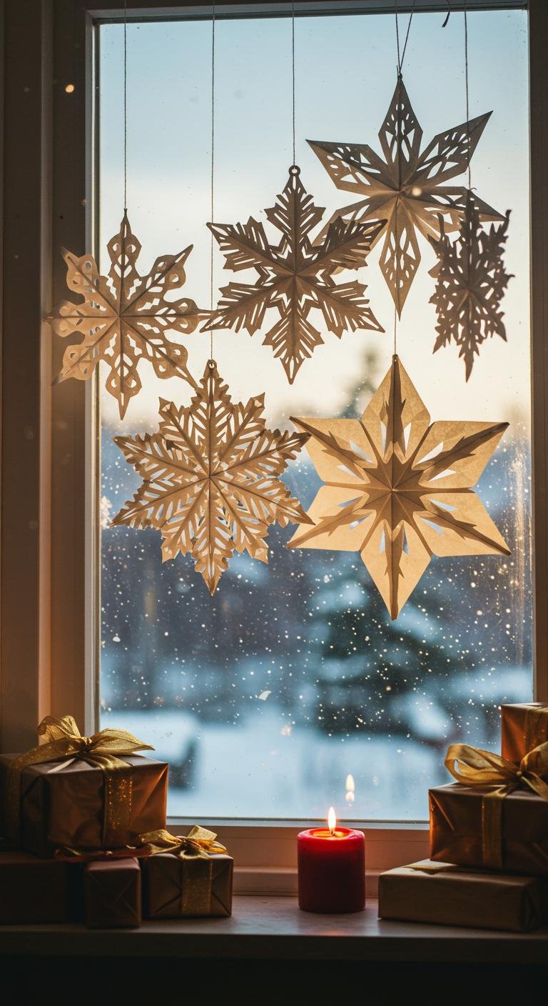 Grab some snowflake stencils and transform plain paper into delicate paper snowflakes. Hang them in your windows to capture the light, creating a dreamy winter wonderland effect.