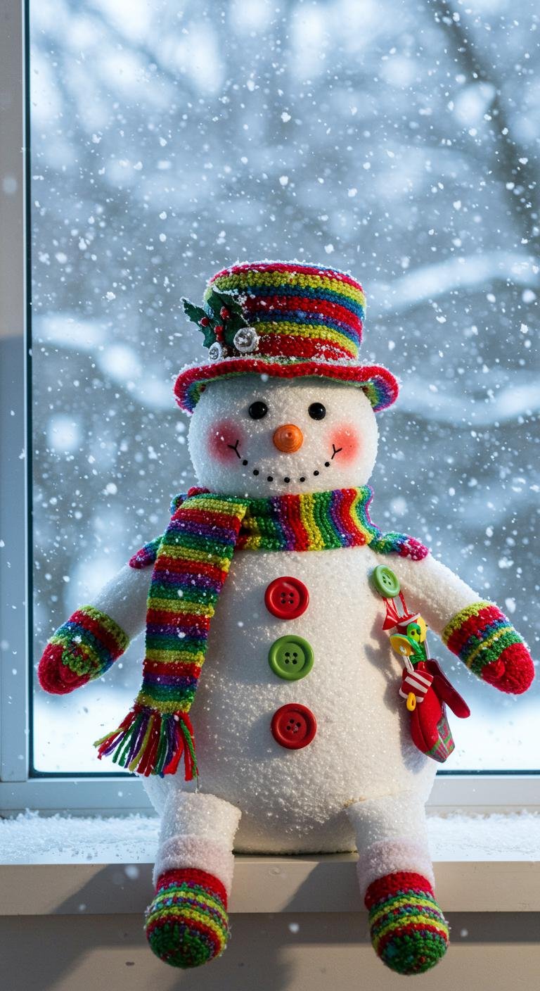 Imagine a whimsical snowman adorned with colorful snowman accessories, bringing warmth and joy to your windows.