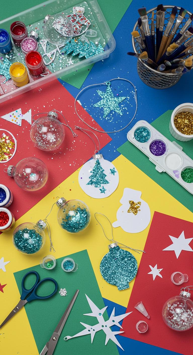 You can experiment with glitter techniques like dipping, painting, or rolling, and try out ornament variations such as clear baubles, paper shapes, or even salt dough.