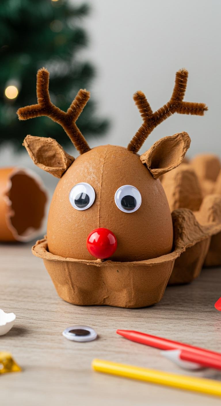 Transforming an ordinary egg carton into a charming reindeer is a creative holiday project that kids will love. By cutting the carton into sections, you can create the body and head. Paint it brown, add googly eyes, and make antlers from pipe cleaners. These fun egg carton crafts make delightful reindeer decorations. Your child will enjoy crafting and proudly displaying their festive creations!