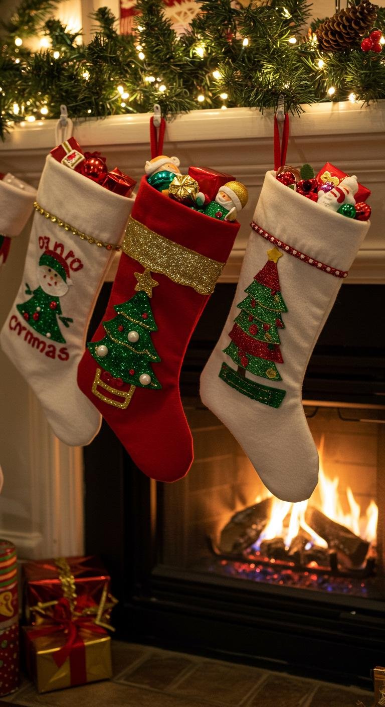 You can create unique stocking designs using felt, glitter, or paint. Don’t forget to include some fun stocking stuffing like small toys or treats.