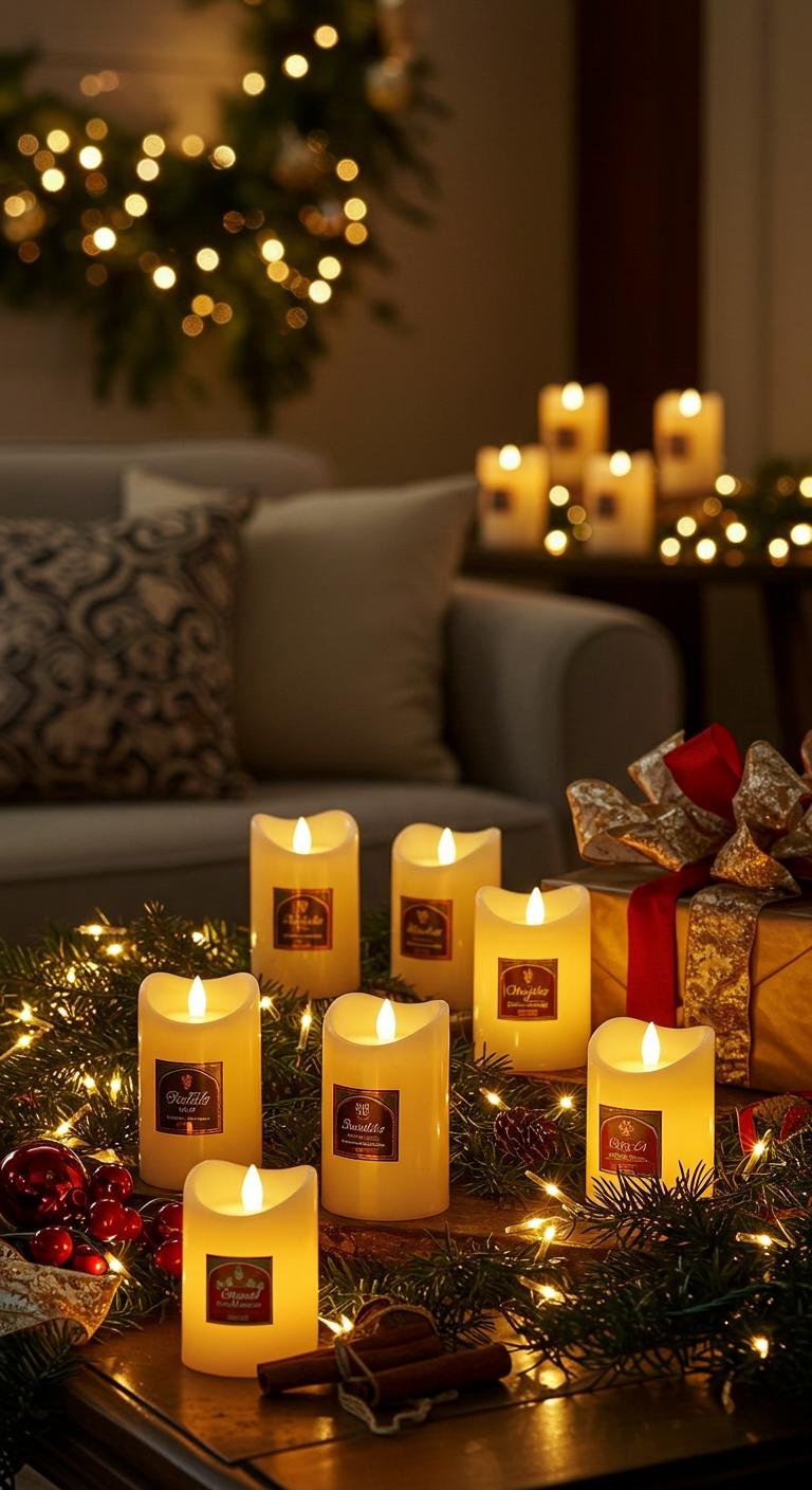 Transform your holiday atmosphere with LED candles that offer a warm, flickering glow without the worry of open flames.