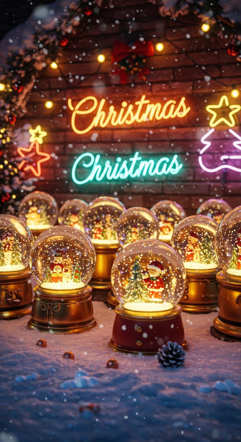 After capturing the magic of winter in your display with mesmerizing light-up snow globes, consider adding the vibrant flair of neon Christmas signage to your holiday décor.