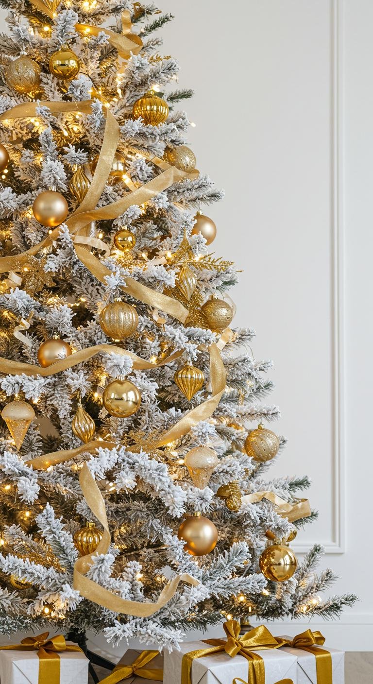 There’s something so peaceful about a flocked tree, don’t you think? That snowy white fluff feels like a little winter wonderland right in your living room. It’s the perfect backdrop for golden ornaments to really pop and shine. Bonus: flocked trees come in all sorts of price ranges, so you can snag one that fits your budget. If you’re feeling crafty, you can even try spritzing your own tree with spray-on snow. Multiplying textures—like mixing shiny, matte, and glossy ornaments—makes the whole look feel luxe but natural, like a cozy snowy morning.
