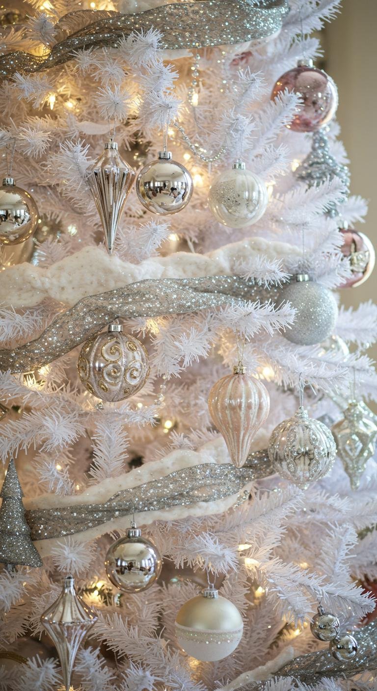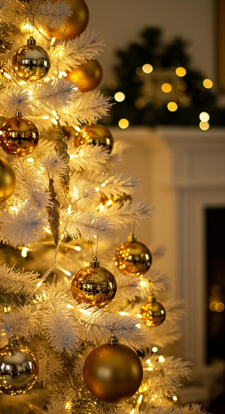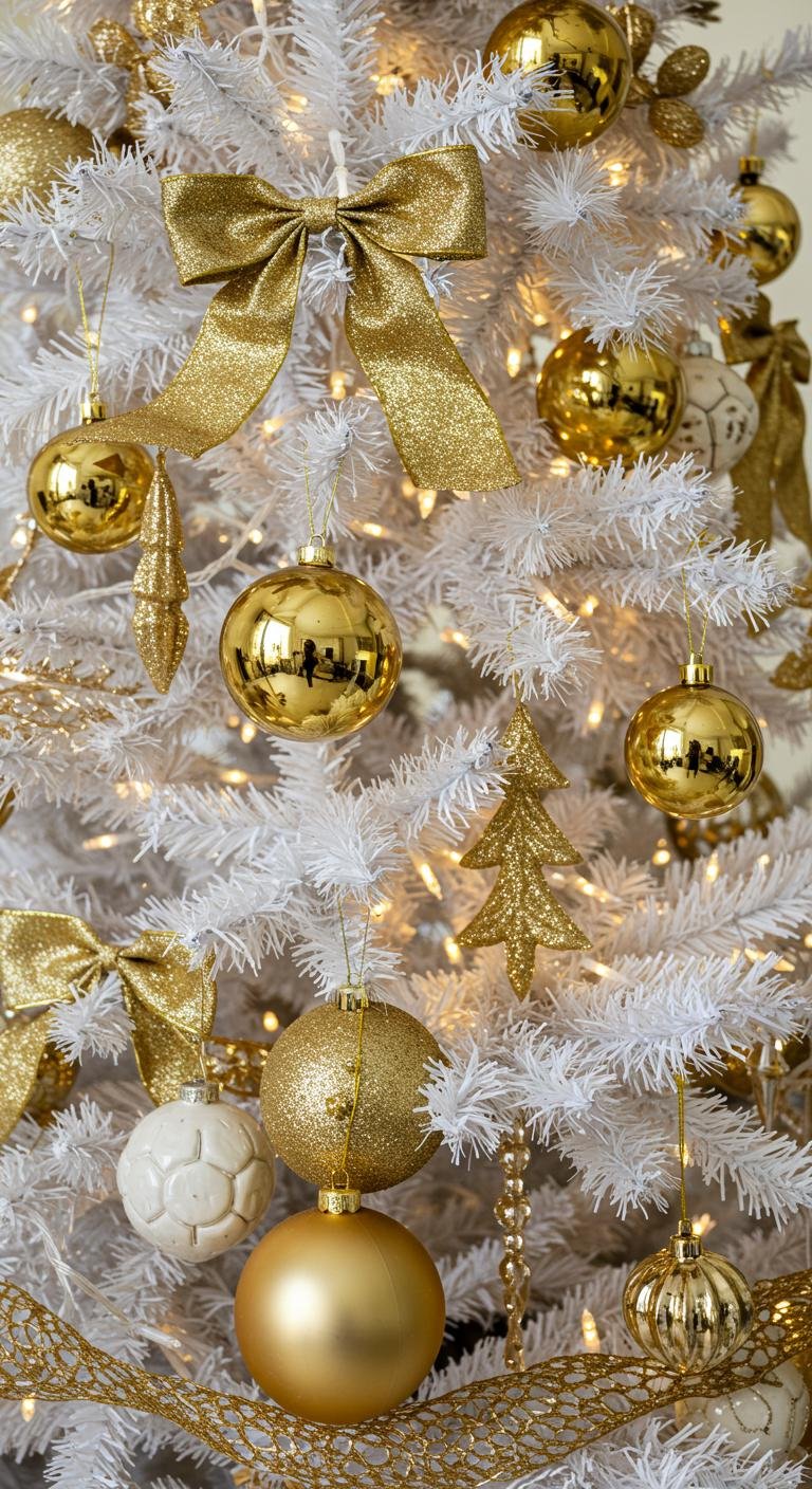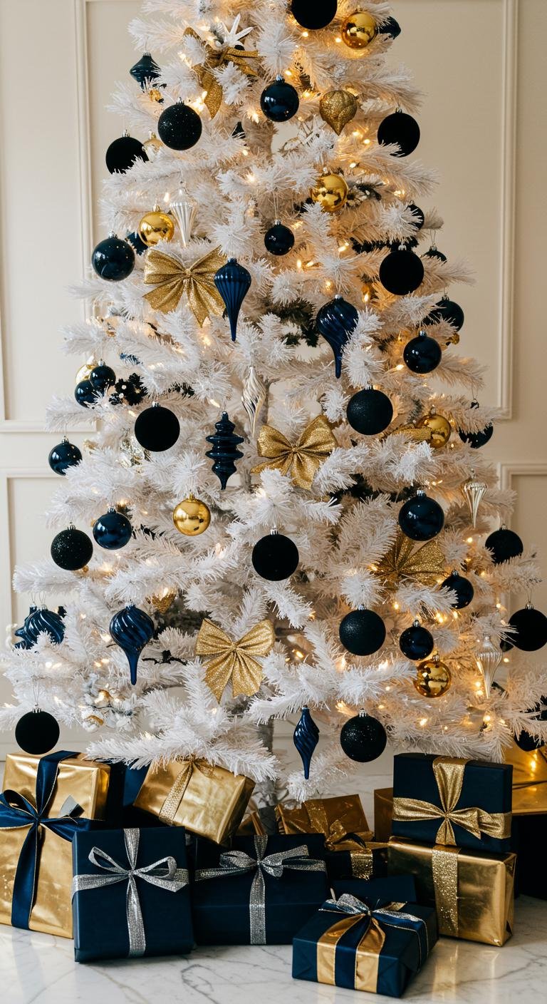 If you want a twist, try adding bold accents like deep blues or rich blacks. These colors really pop against the white and gold and keep things interesting. Just pick a few statement pieces so the look stays balanced, and consider spray-painting ornaments you already have in your chosen accent color. It’s a fun, cost-effective way to shake things up and make your tree uniquely yours.
