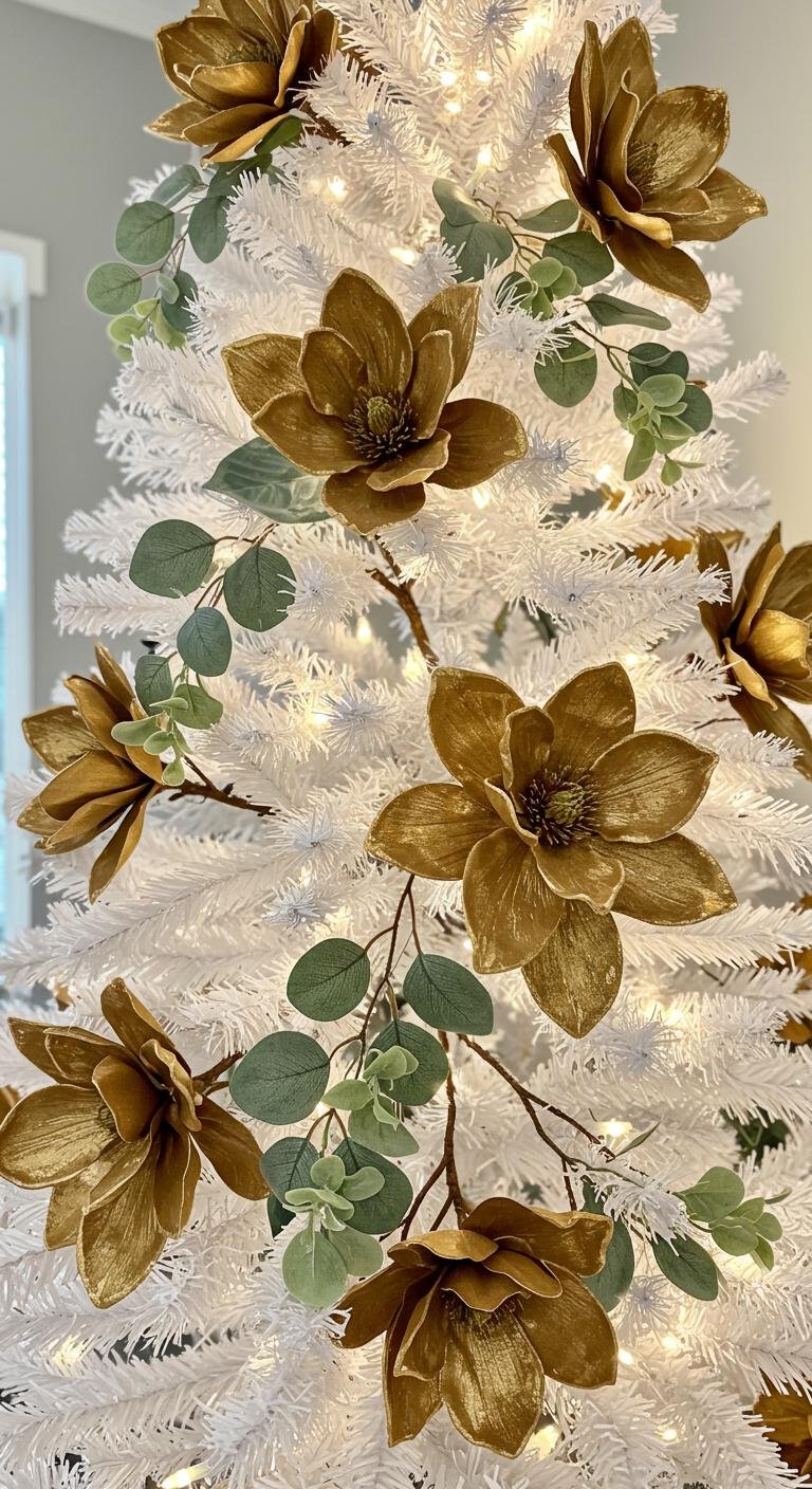 Faux florals are a game-changer for adding softness to your metallic theme. Imagine white poinsettias or gold-painted magnolias tucked between ornaments—it just warms up the whole vibe. You can easily make your own by spray-painting store-bought flowers. Throw in some faux greenery or twinkly sprigs for extra dimension. Bonus: making these accents can be a fun cozy project, perfect for a solo afternoon or family time.