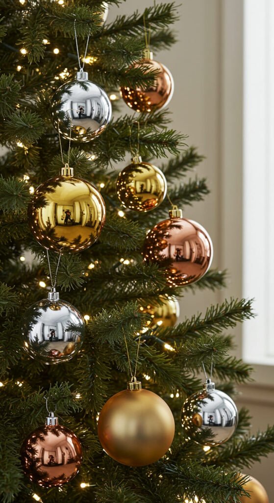 Add a touch of elegance to your holiday decor with metallic ornaments that catch the light and create a mesmerizing glow.