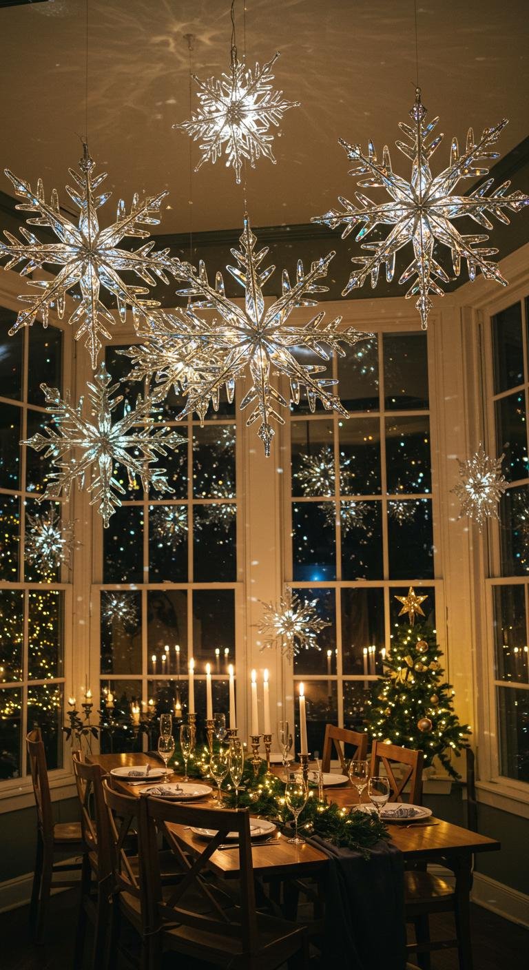 Picture shimmering snowflake garlands gracefully cascading from your ceiling, turning your space into a winter wonderland.
