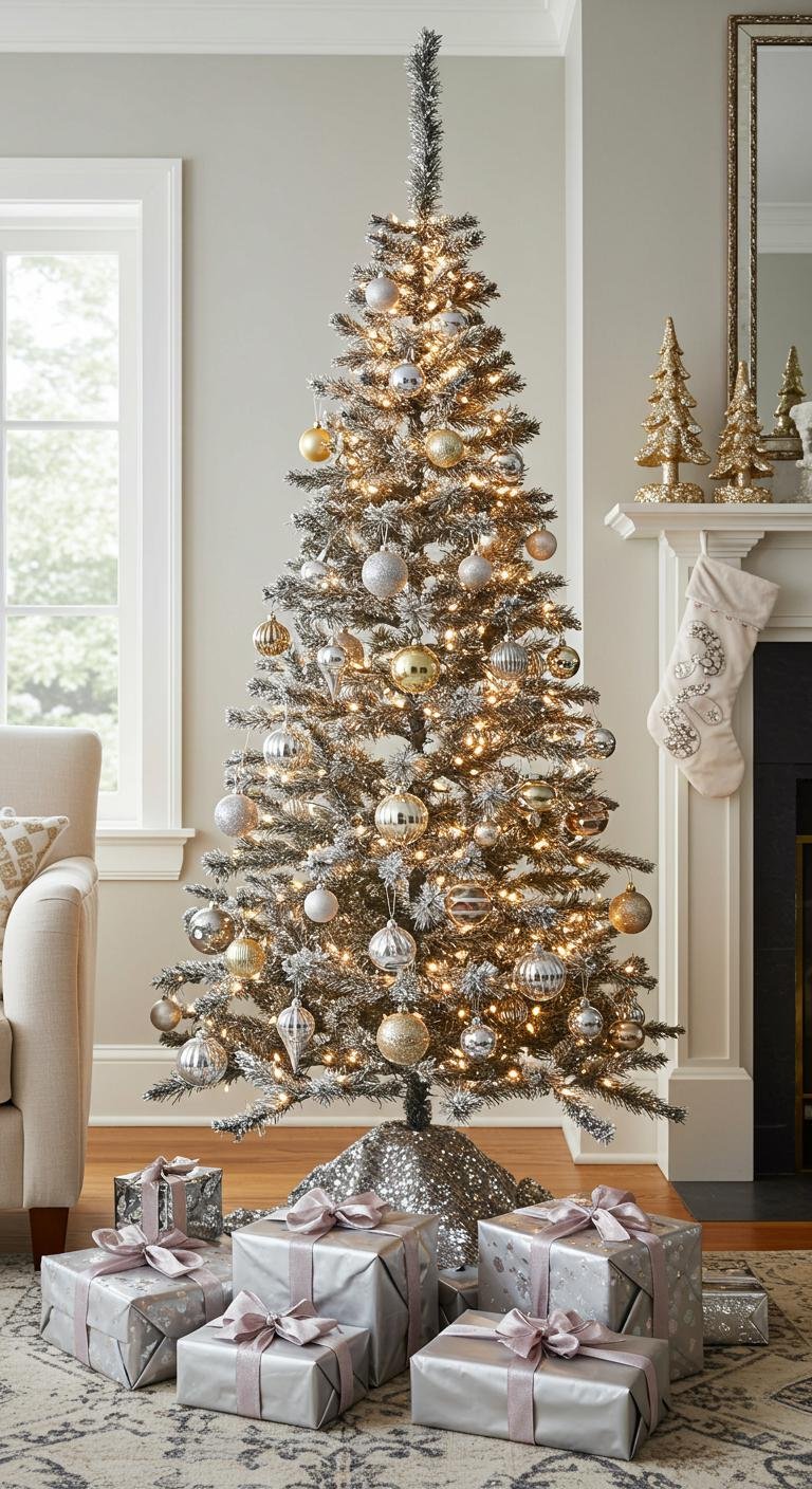 Adorn it with sparkly ornaments that catch the light, reflecting a shimmering essence throughout your space.