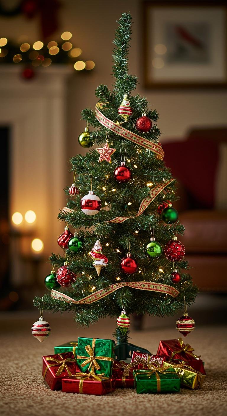 Adorn it with classic ornaments that bring nostalgia and warmth, while draping festive ribbons to create that perfect, cozy vibe.
