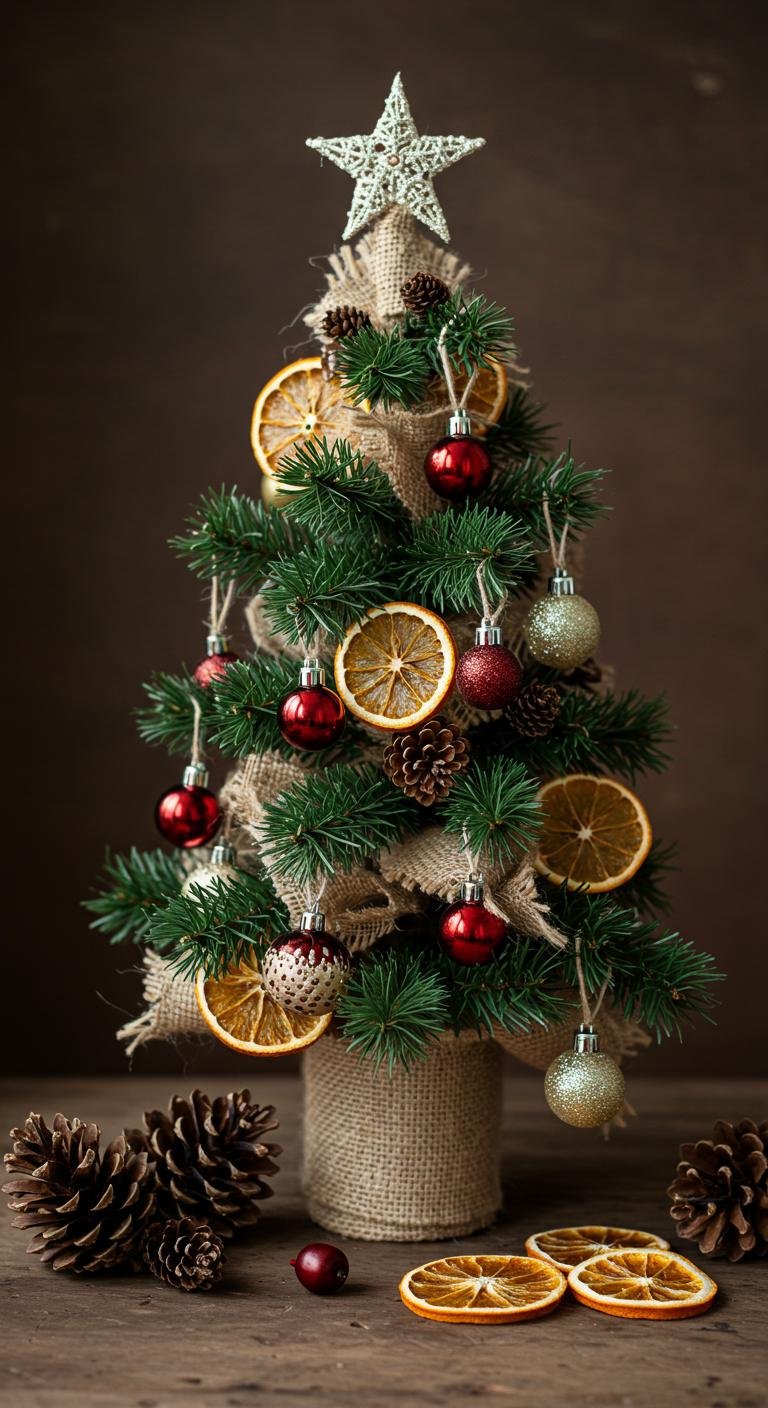 Use eco-friendly materials like burlap or recycled paper to construct the base and adorn it with handmade ornaments that resonate with your aesthetic.