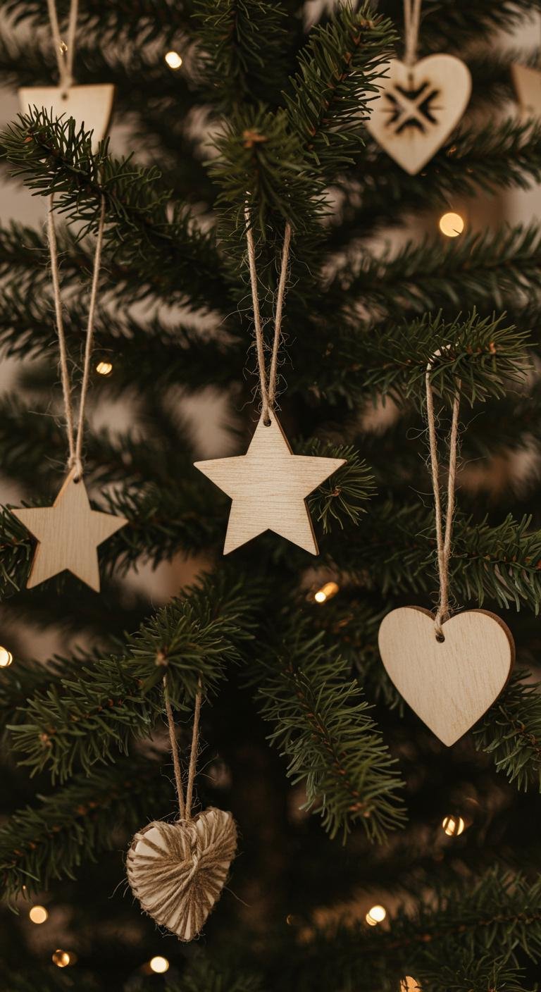 Wooden ornaments are like the unsung heroes of minimal Christmas decor. They fit perfectly with a brown color scheme, adding this cozy warmth that just feels right. If you’re feeling crafty, making your own wooden slice ornaments is super easy—grab some small wooden discs, and either burn simple designs into them or paint something sweet. Tie them up with twine and boom, rustic charm achieved! If DIY isn’t your thing, you can always pick up a bunch at craft stores, and they come in tons of cool shapes that won’t mess with your serene vibe.