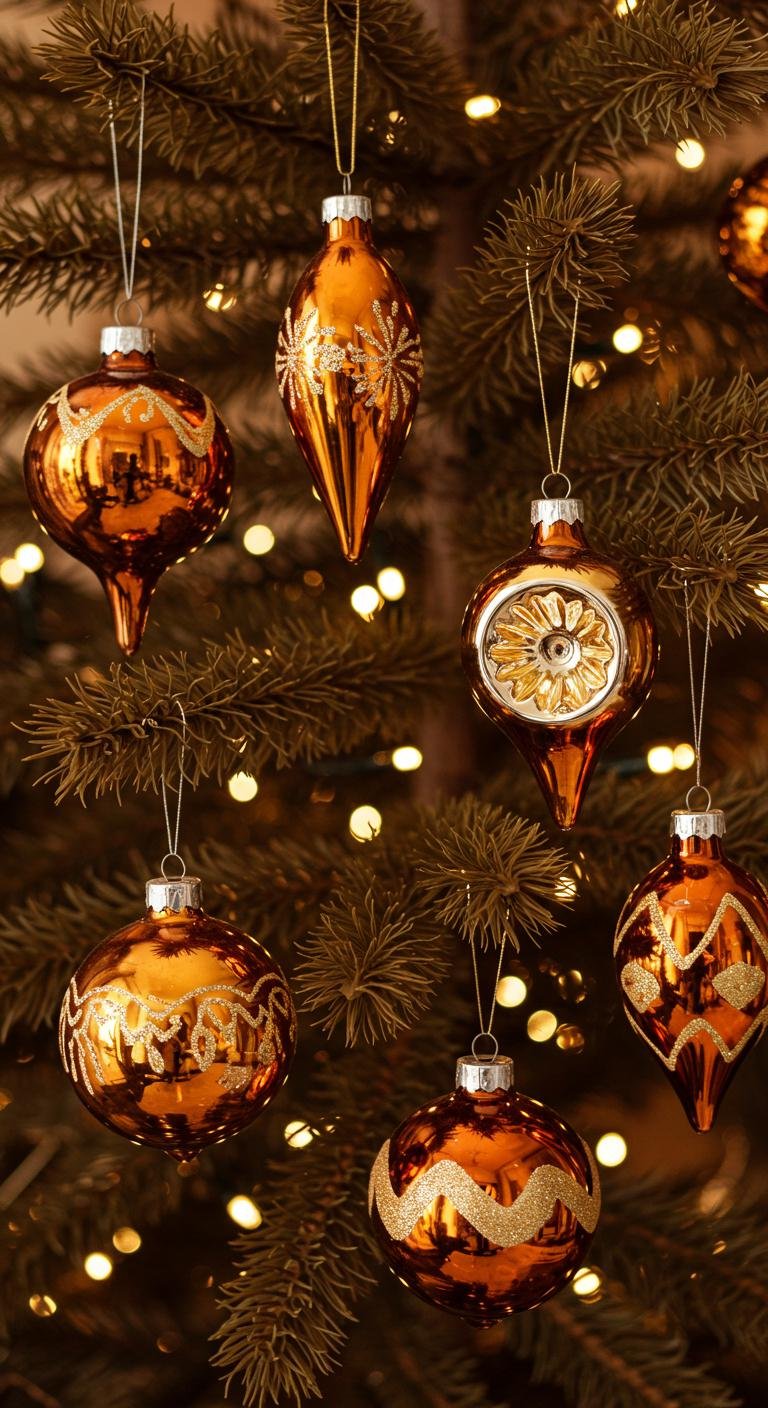 If you want to sprinkle some old-world magic on your tree, vintage glass ornaments are where it’s at. Look for shades like rust and amber that blend perfectly with brown tones. Bonus points if you find sustainably sourced pieces! Hit up thrift stores or antique shops for unique finds that won’t blow your budget. Clustering similar colors or styles together can make such a lovely focal point.