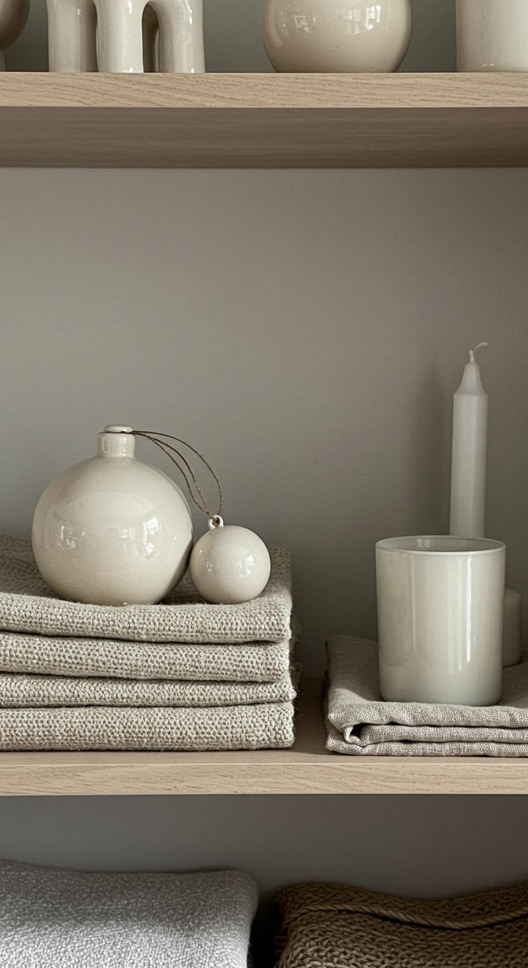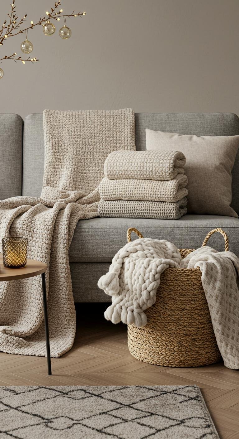 Layering cozy blankets, throws, and fluffy cushions instantly turns any spot into a holiday sanctuary. It’s the perfect way to invite comfort without crowding your space. Don’t overlook thrift stores here — you’d be amazed by the affordable, stylish finds you can score. Stick to light and neutral fabrics to keep that minimalist vibe alive while still feeling totally warm and welcoming.