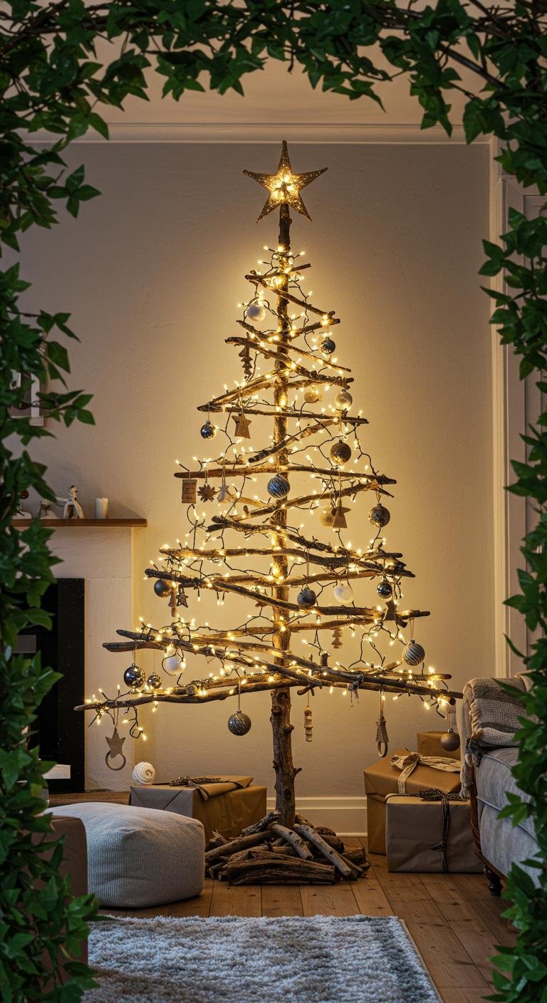 Who says a Christmas tree has to be the classic pine? Minimalists can get super creative with fun alternatives like twig trees or wooden frame shapes. These save space and keep your look simple yet charming. Plus, DIY-ing one is pretty addictive — grab some scrap wood or driftwood, arrange it in a triangle, and tie it up with twine. Add some soft lights and minimal ornaments, and boom, you’ve got a tree that’s totally unique and cozy without the fuss.