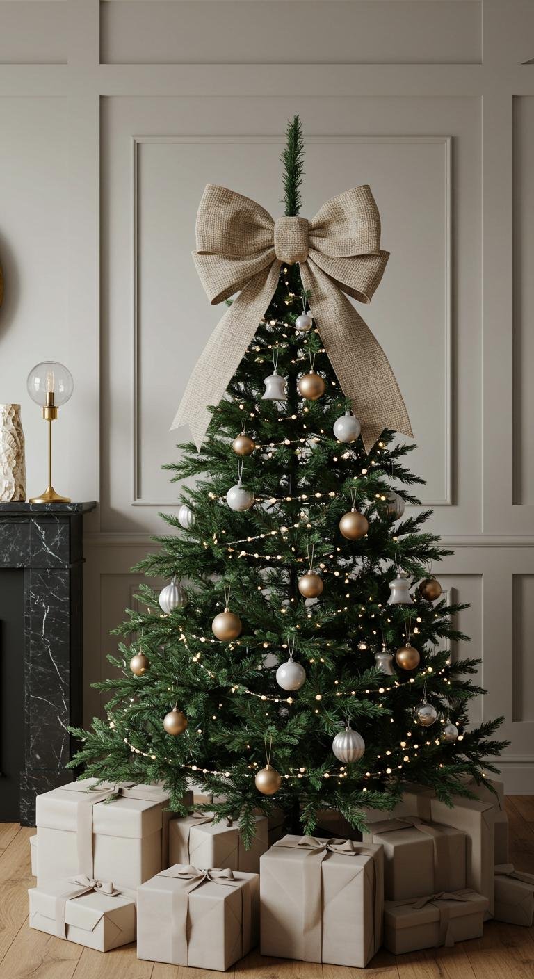 Just because your tree is minimalist doesn’t mean it can’t have personality! A standout tree topper like a big bow, a simple wooden star, or even a little branch can add that perfect touch. I love DIY-ing bows from fabric or ribbon to match my color theme. It’s an easy way to add sparkle and charm without going overboard. Plus, you can play around with different shapes and sizes until it feels just right.