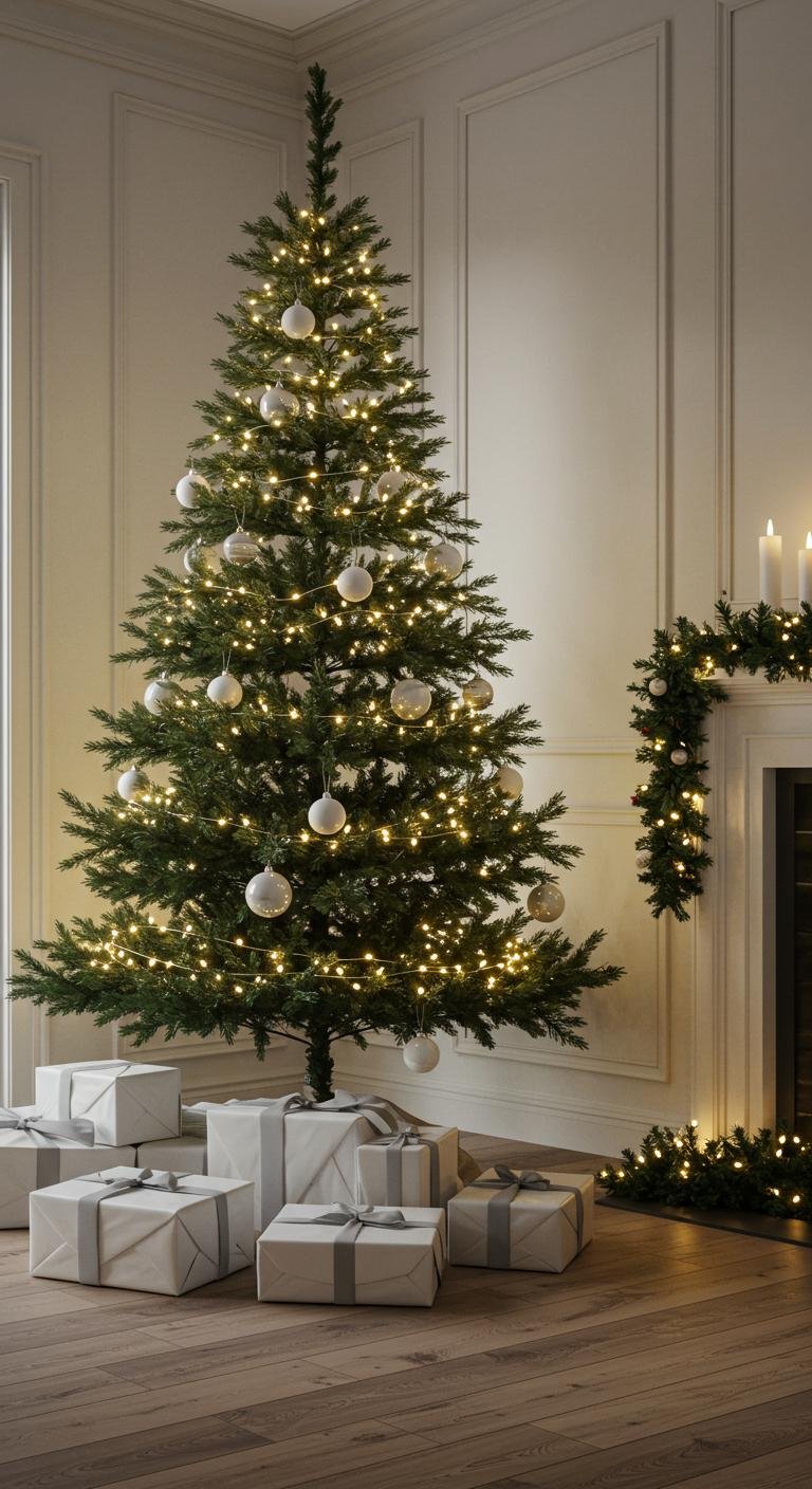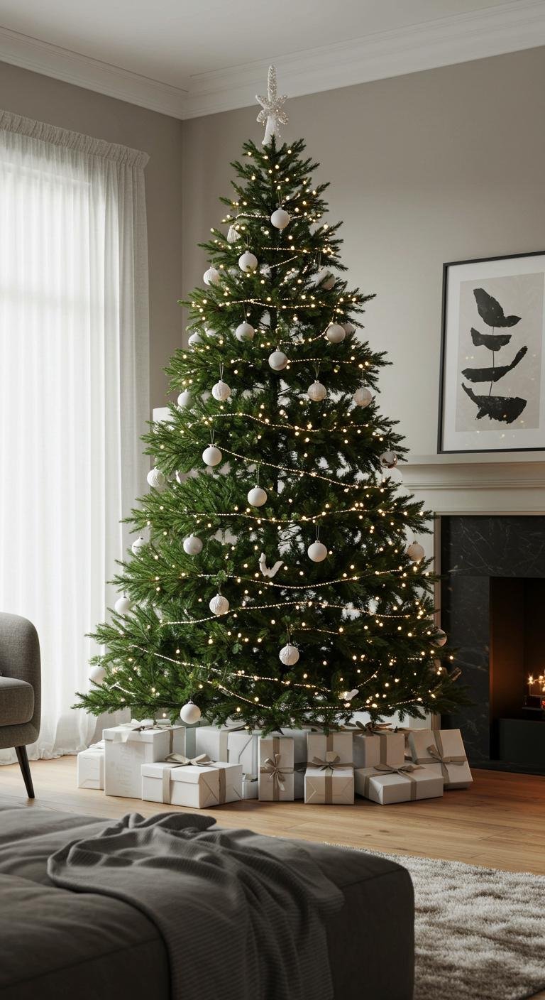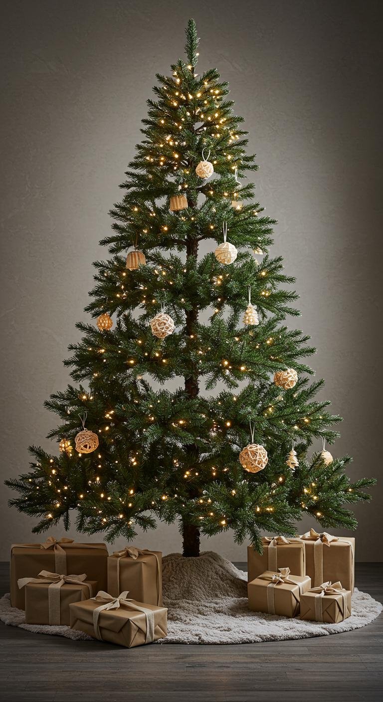 Sometimes, less is more — especially when it comes to using lights as your tree’s main star. Wrapping warm LED lights delicately around the branches can turn your minimalist tree into a glowing centerpiece all on its own. Pair them with natural textures, like a linen tree skirt in a soft beige, and you’ve got a vibe that’s both elegant and cozy. Bonus points if you reuse string lights from years past or hunt for affordable ones online — budget-friendly and charming, what’s not to love?