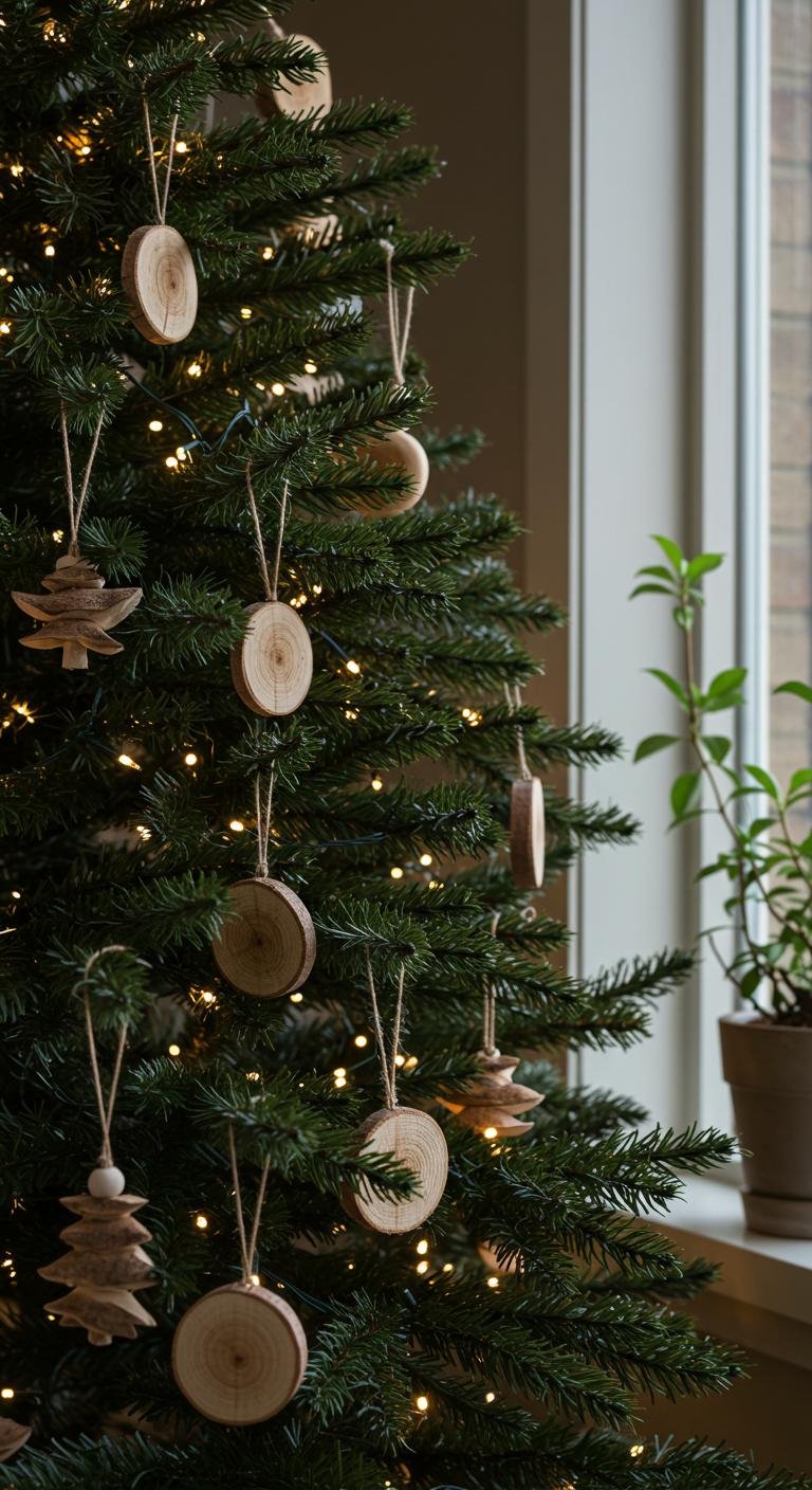 Nothing says cozy and rustic like natural wood accents. Wooden ornaments lend an organic, earthy charm to your minimalist tree that feels genuine and warm. You can snag some ready-made ones or get your hands dirty crafting your own from wood slices. A light stain or sealant keeps the wood protected, plus you can decorate them with paints or burned designs for a personalized twist. Pair these beauties with soft fabric ribbons or simple burlap for a look that’s inviting but never cluttered.