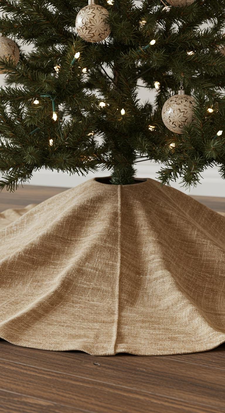 No minimalist tree feels quite complete without the perfect skirt at its base. Look for materials like burlap or muslin — they’re understated but add such a nice layer of warmth and texture. If you’re into DIY, cutting your own circular skirt from fabric and letting the edges fray naturally is an easy and charming option. Personalize it with simple details like twine or a minimal embroidered pattern, and you’ll have an affordable, cozy addition that ties the whole look together.