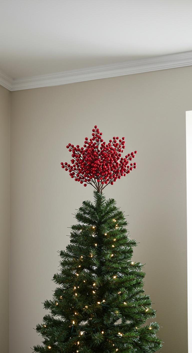 A statement tree topper doesn’t have to be the usual star or angel to make a big impression. Trying something like a bold red berry bouquet adds a festive pop that’s perfectly at home on a neutral tree. Gather berry branches and cluster them into a simple bunch for a look that’s natural yet eye-catching. For the DIY fans, mixing floral and dried fruit elements can make a totally unique topper that feels special without complicating the minimalist vibe.
