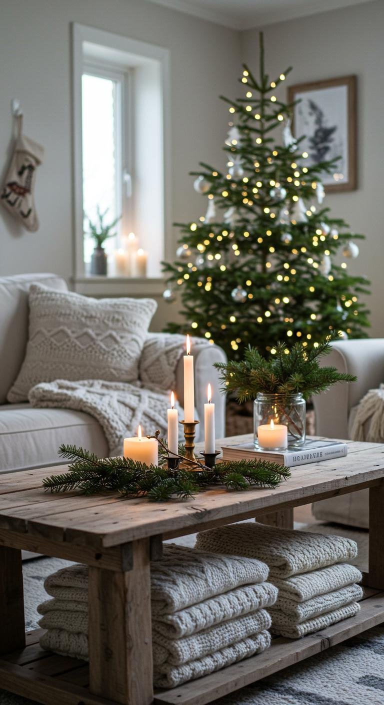 Alright, if you love that warm, fuzzy feeling, embracing hygge is where it’s at. Imagine wrapping yourself in chunky knit throws and sinking into soft, inviting pillows on your sofa. Light a bunch of candles at different heights on your coffee table to get that dreamy, soft glow going. To top it off, fill a woven basket with pinecones and mini ornaments for a low-key but festive centerpiece. And here’s a bonus — you can snag these cozy touches super cheap at thrift stores, so you’re keeping your wallet happy while getting that welcoming vibe that just invites people to stay awhile.