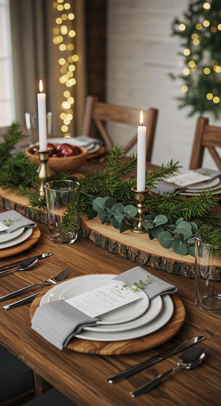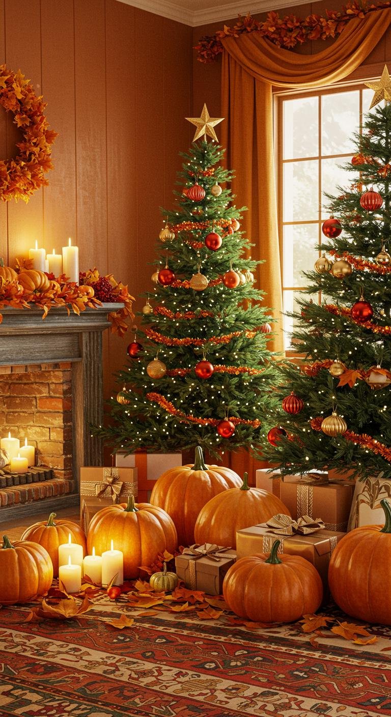 Here’s a twist — blend those cozy fall vibes with Christmas cheer. Warm oranges and burgundies mix with traditional greens, and you can even toss in pumpkins alongside your ornaments. That combo makes for a stunning transition from autumn into the holidays. Dress your table with a mix of pinecones, foliage, and flickering candles to carry the warmth through. Bonus? A lot of your existing fall decor can be repurposed, so you get a fabulous look without extra spending.