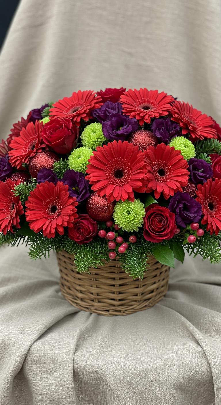 Getting thematic with your flowers is so much fun! Channel winter vibes by picking colors like icy blues, shimmery whites, or adding twinkly lights and glitter. This makes your arrangements feel super cohesive and festive, whether they’re chilling inside or sprucing up your outdoor space. It’s like wrapping your decor in a holiday mood.