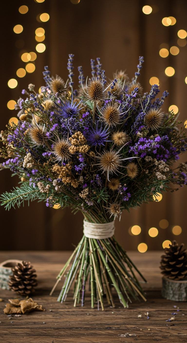 Dried flowers aren’t just pretty; they’re also super practical because they stick around way longer than fresh ones. I’m talking dried roses, lavender, eucalyptus — elements that add warmth and a little texture to your holiday setup. Stick with muted tones for a soft, cozy feel, or pair them with fresh evergreens to keep it lively. You can snag dried bouquets online, from local artisans, or even try drying your own — it’s a fun craft project in itself!