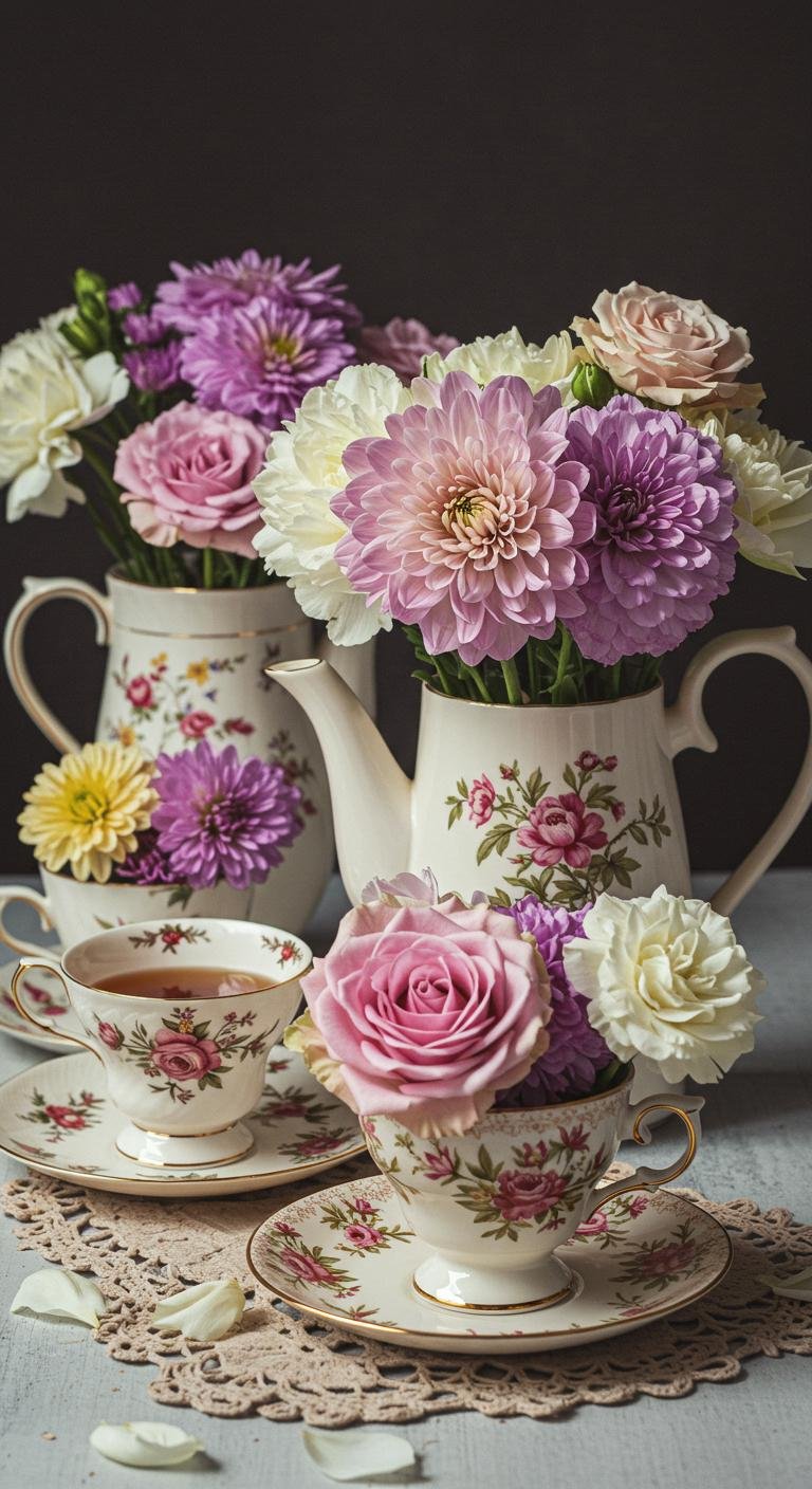 Vintage containers like antique vases, teapots, or old bowls can add so much charm. Pair them with fresh blooms for this fun contrast of old and new. Thrift shops and flea markets are perfect for uncovering these gems — each piece lends your arrangement its own personality. Mixing in unexpected items keeps things eclectic and personal, which is always a win in my book.