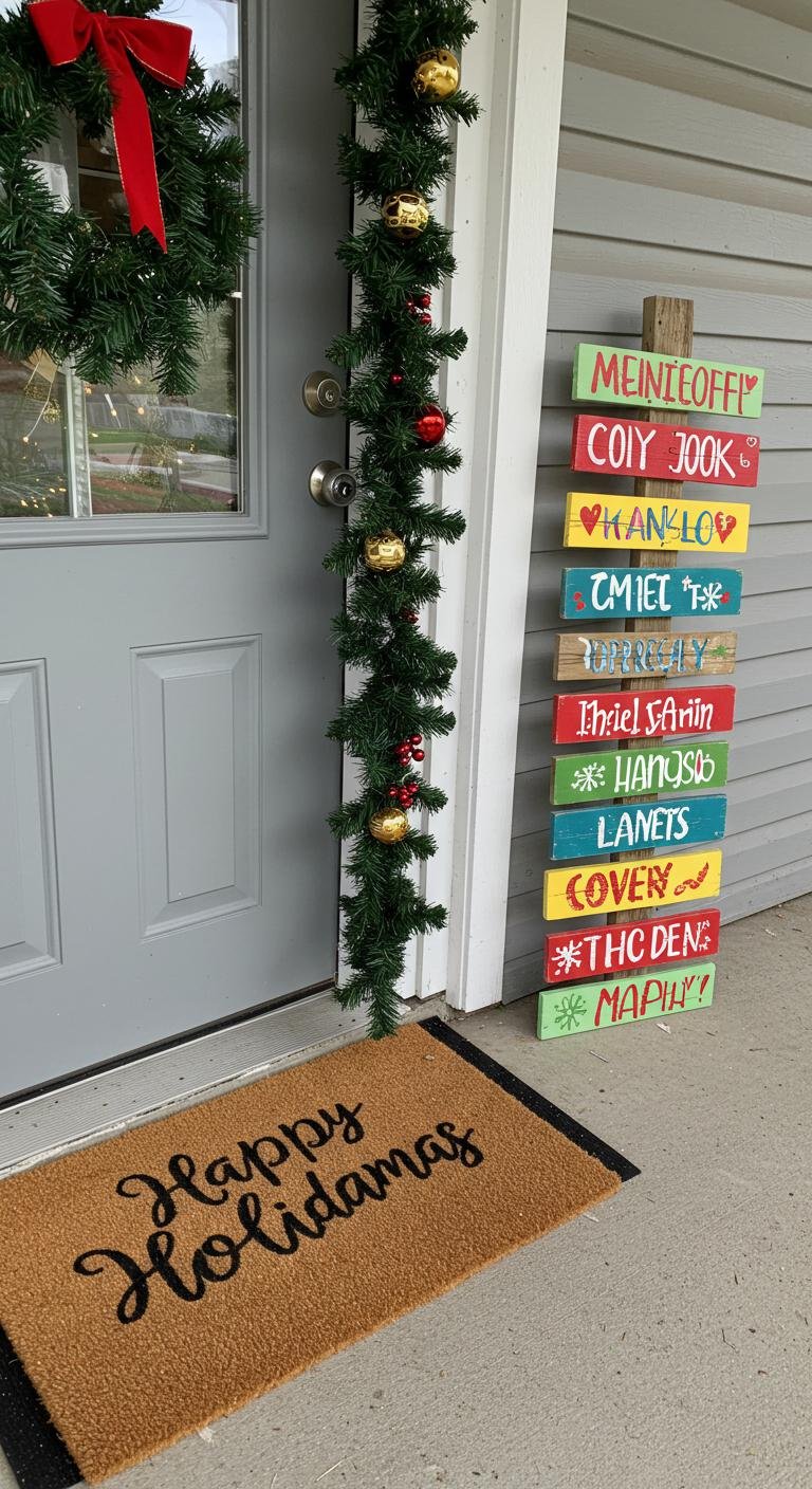 Nothing says welcome like a warm greeting right by your front door. Start with a cheerful doormat featuring festive phrases, then maybe add a wooden sign painted with your personal holiday message. Making one yourself from pallets is a fun, easy craft project. Extras like wooden reindeer or festive figurines nearby add that extra sprinkle of holiday spirit, especially when visible from the street.
