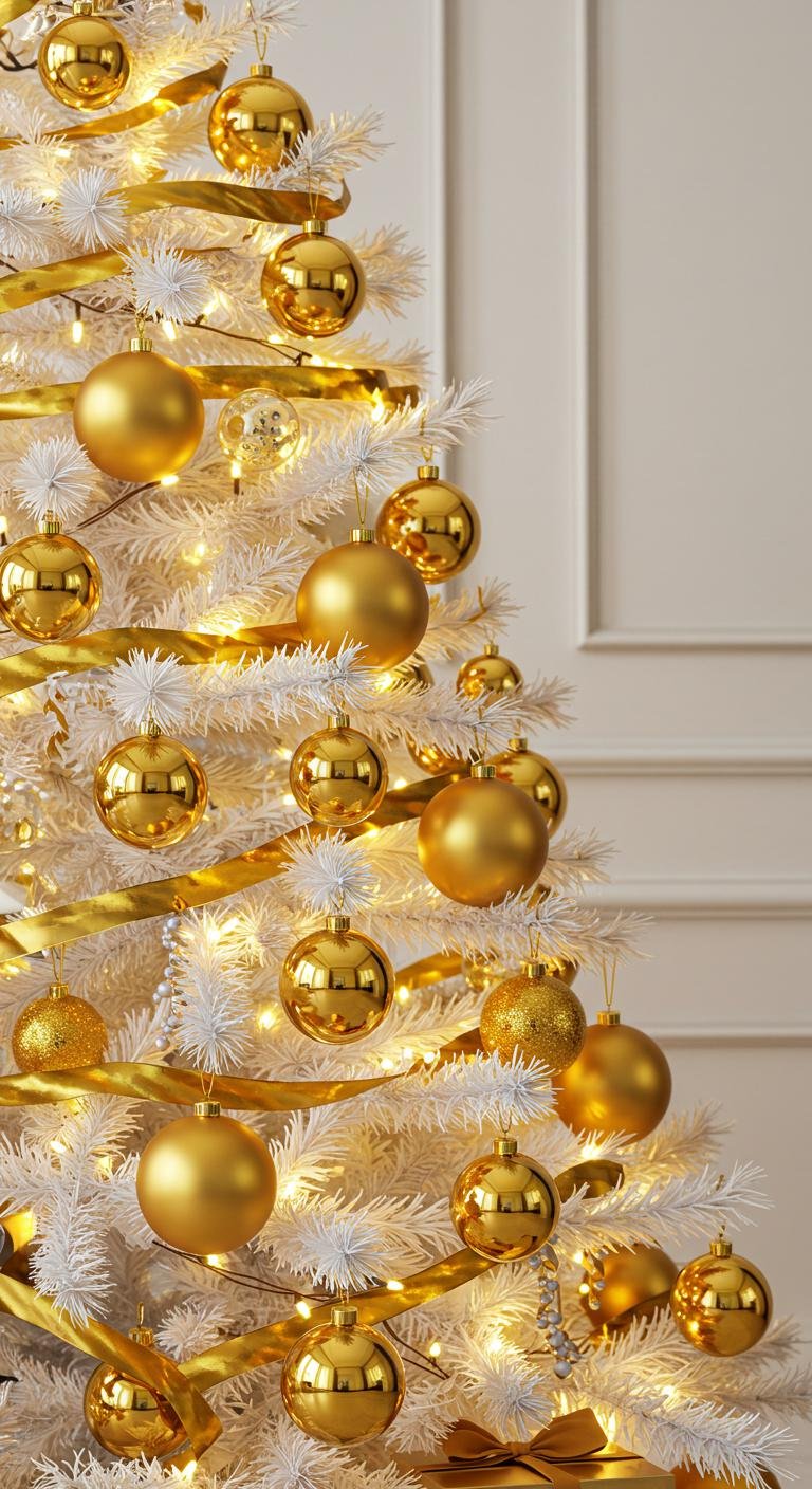 Mixing matte, glossy, and metallic ornaments is a genius way to keep your white and gold tree anything but boring. Layered textures add so much depth and visual interest. Toss in different ribbon finishes and maybe even some DIY fabric or yarn ornaments to give your tree a cozy, handmade vibe. It’s a simple trick that breathes life into your overall look.