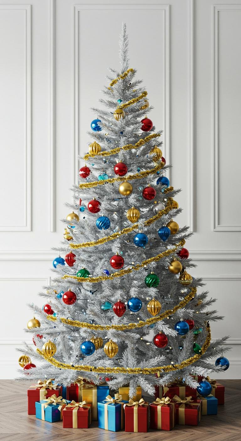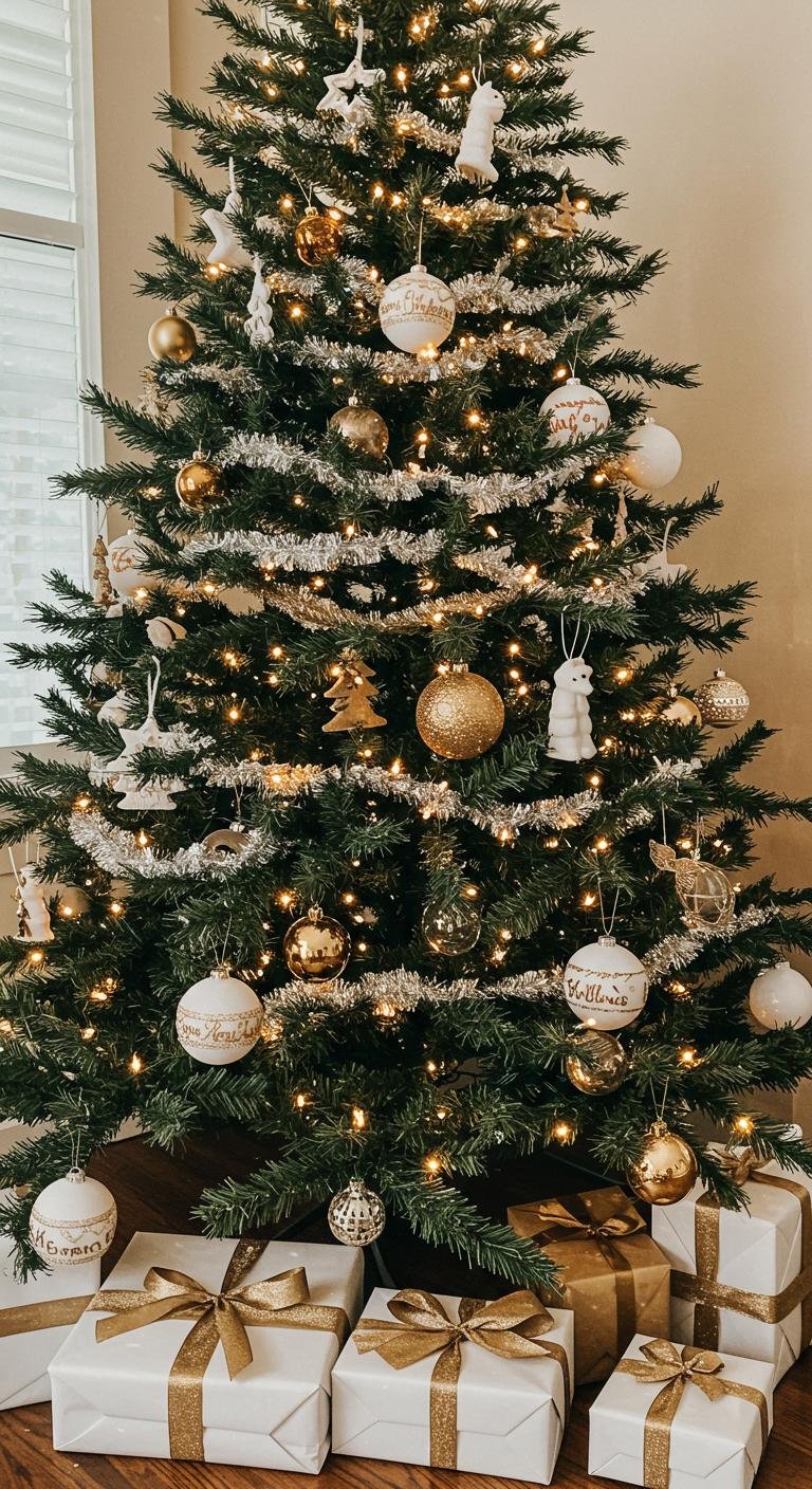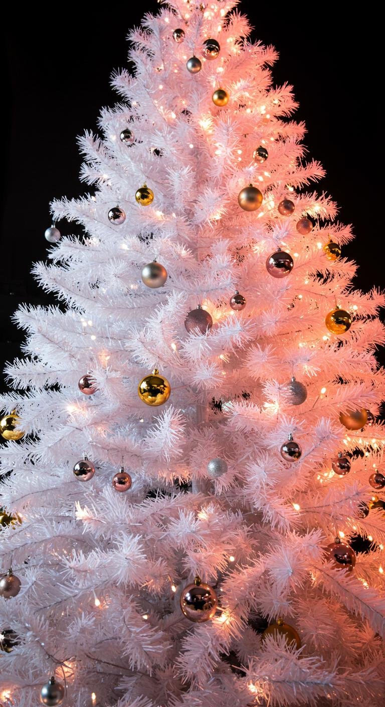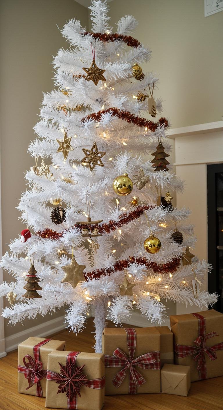 Lighting can totally make or break your holiday mood, right? On a white tree, golden lights feel like warm hugs all around. Wrapping those warm white string lights snugly over your branches adds instant coziness. But here’s the fun part—throw in some multicolored lights for a pop of playful contrast that makes the whole scene inviting and festive. LED lights are affordable and flexible, so you can switch it up any year without fuss. Pair those twinkling lights with shiny gold ornaments, and bam—you’ve got real holiday magic happening.