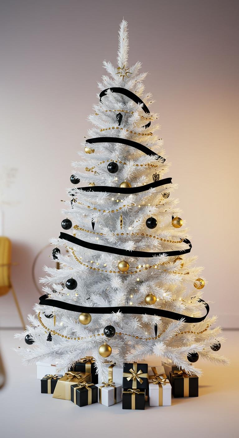 Here’s a cool styling hack—adding a few black or dark accents can actually make your white and gold look pop. Think black ornaments or patterned touches that keep things edgy and upscale. You can even get creative and DIY some textured decorations with paints or fabrics. It’s a chic, modern twist that still feels totally festive.