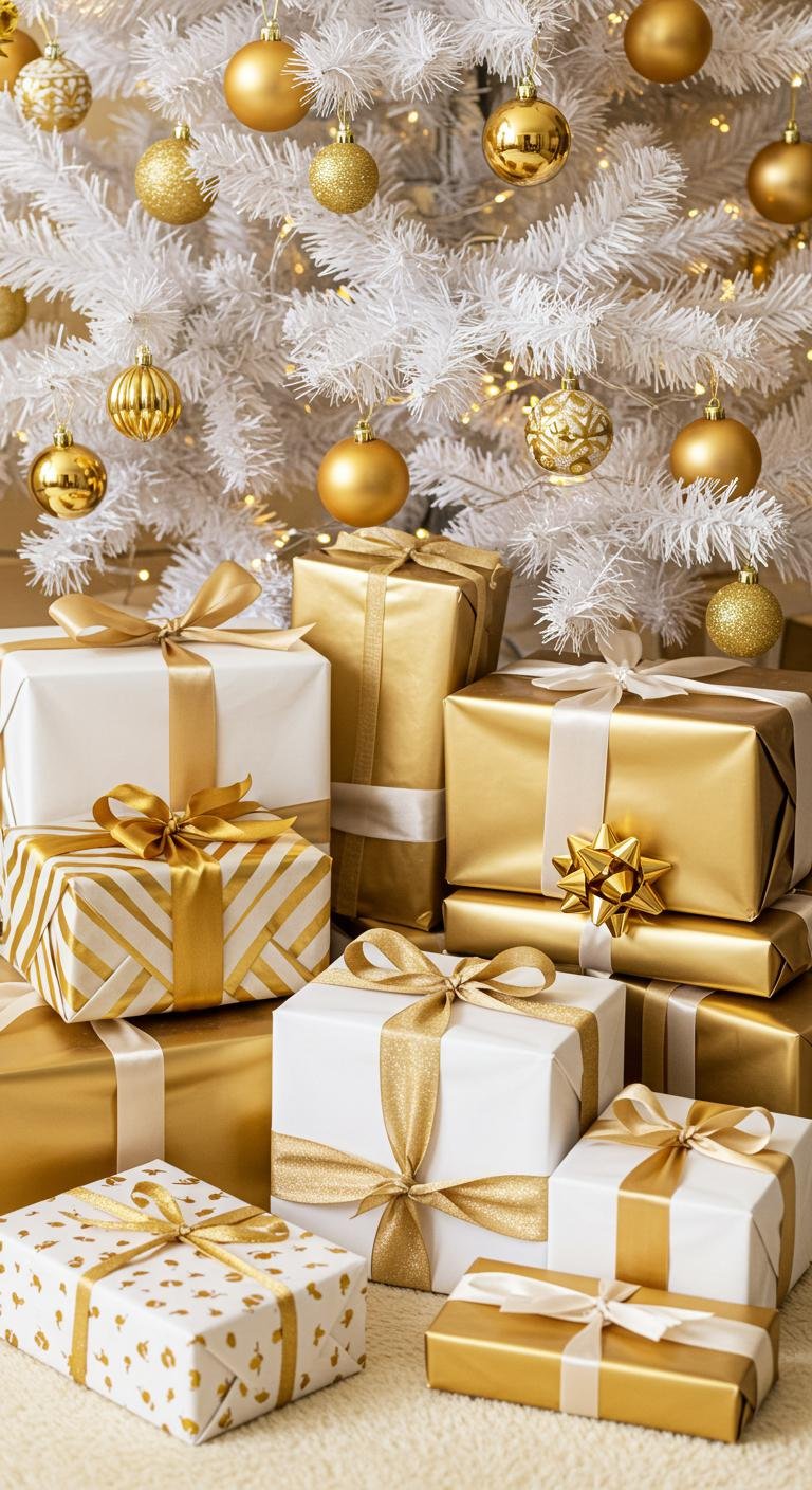 To make your holiday space feel truly pulled together, match your dining setup and other décor bits to your white and gold tree vibe. Think white plates edged in gold, gold-toned napkins, or chair covers that echo your theme. Even gift wrapping that plays into your tree’s colors makes the whole room sing. Those little details create a cozy, cohesive atmosphere that really impresses guests.