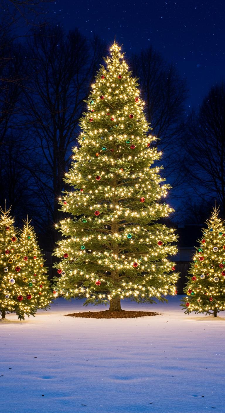 Nothing screams Christmas like glowing outdoor evergreen trees. Try placing one near your driveway or front door to really catch eyes. If you’re watching your budget, grab a simple evergreen and wrap it with some affordable white or colored string lights. Battery-operated lights are clutch if you want to avoid tripping over cords. Layer the lights by spacing bulbs out up top and wrapping tighter near the bottom — it adds depth and makes the whole thing pop. Bonus points for adding shatterproof ornaments for that extra festive sparkle!
