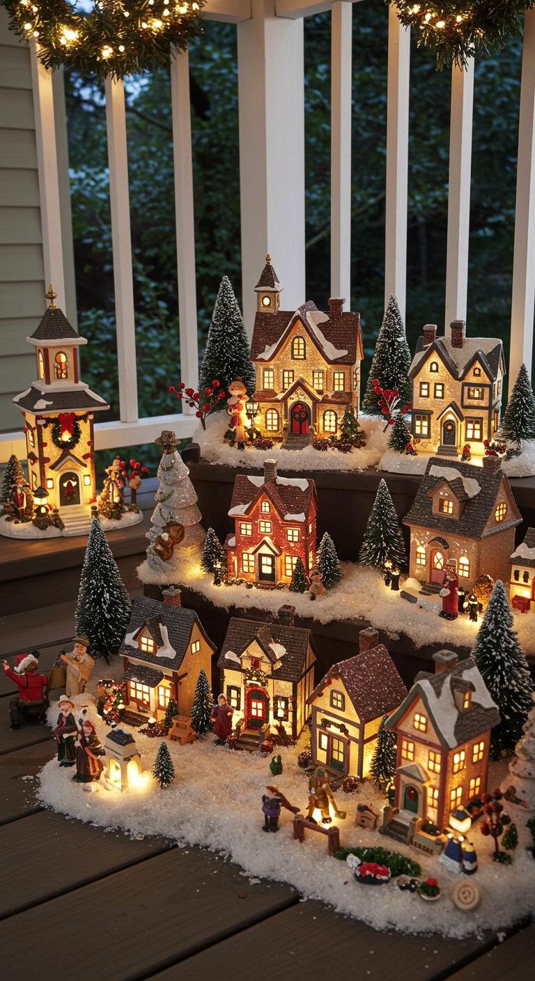 Holiday village displays are like stepping into a Christmas storybook. Place these charming miniature houses on your porch or a side table for a delightful scene. You can buy kits at craft shops or DIY with small painted boxes you have around. Sprinkle a little faux snow or set them on a pretty cloth to make them pop. It’s a nostalgic touch that guests will totally love.