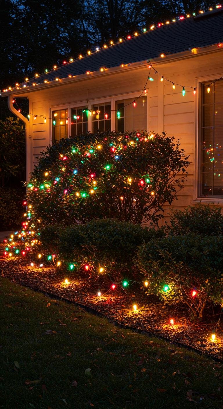 Vintage colored lights are totally making a comeback and honestly, I’m obsessed. Those cheerful, multi-colored bulbs bring instant nostalgia and charm. String them across your roofline or wrap around trees for that perfect retro vibe. Got some old strings tucked away? Repurpose them! Mix and match colors however you want to create a pattern that’s uniquely yours. Setting timers means you can catch that glow every night without any hassle.