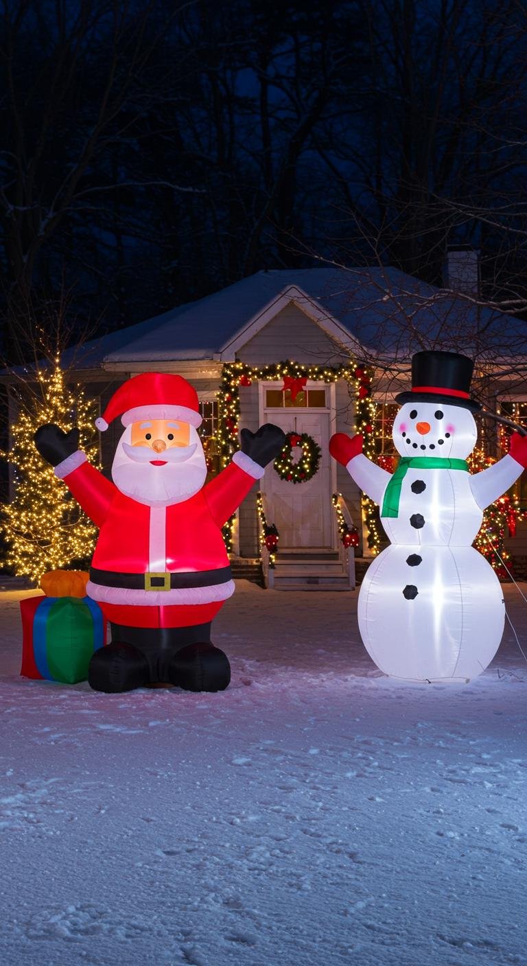 For a playful and cheerful vibe, large lawn ornaments are a total win. Think inflatable Santas, snowmen, or reindeer that instantly say, “It’s Christmas!” You can score great deals both online and in stores. Want something that sticks around year after year? Wooden cutouts painted in bright festive colors do the trick. Just make sure to anchor everything well so the winter winds don’t sabotage your setup!