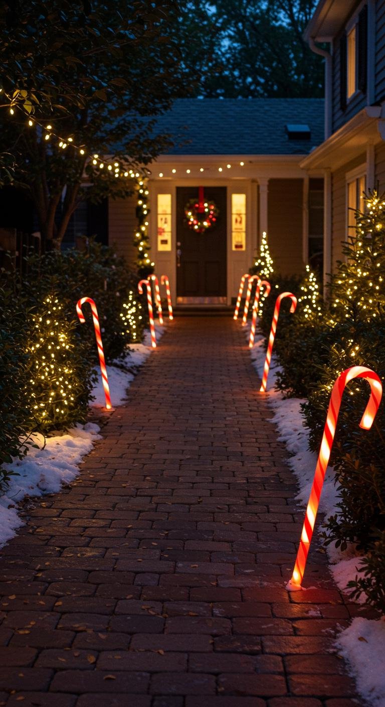 Guiding guests to your door just got a festive upgrade with pathway markers. Glowing candy canes or mini evergreens lining your walkway add charm and light. Feeling crafty? DIY some markers using painted PVC pipes in red or green. Solar or battery-operated lights keep things bright without extra wiring. It’s such a simple touch but instantly makes your home feel warm and welcoming.