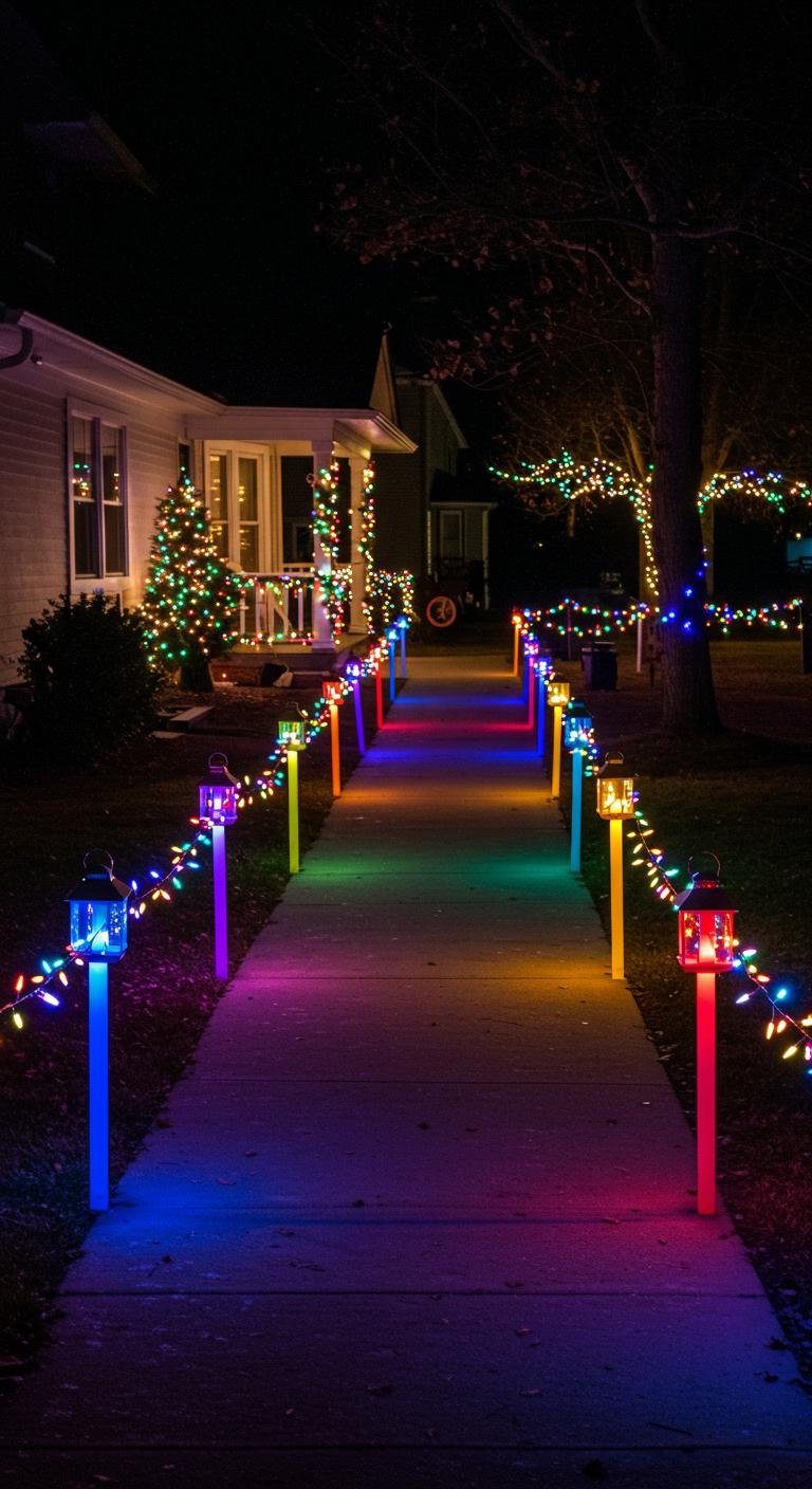 These enchanting decorations create stunning visuals, showcasing vibrant colorful themes that dance down your eaves.