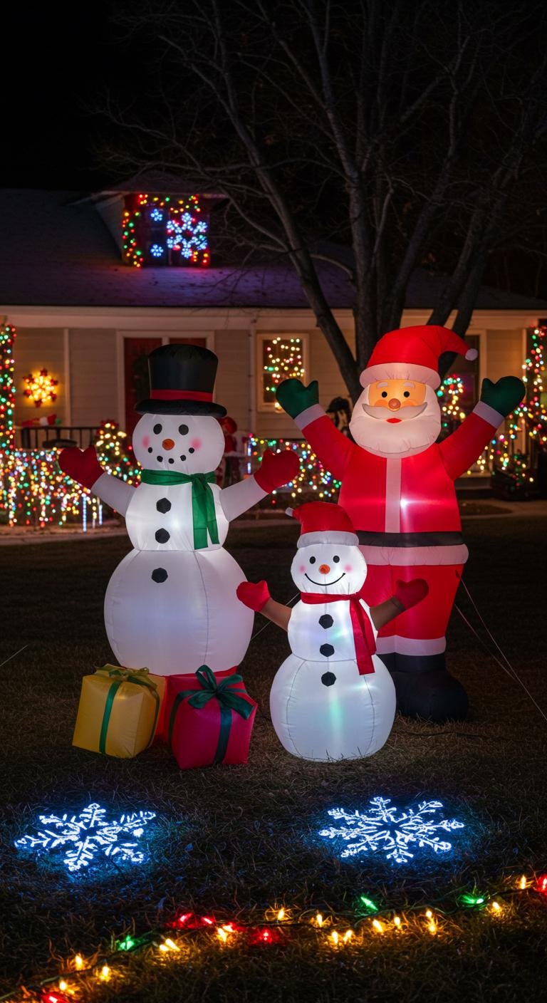 After illuminating your outdoor space with enchanting DIY lighted snowflakes, it’s time to bring in some larger-than-life fun with inflatable holiday characters.