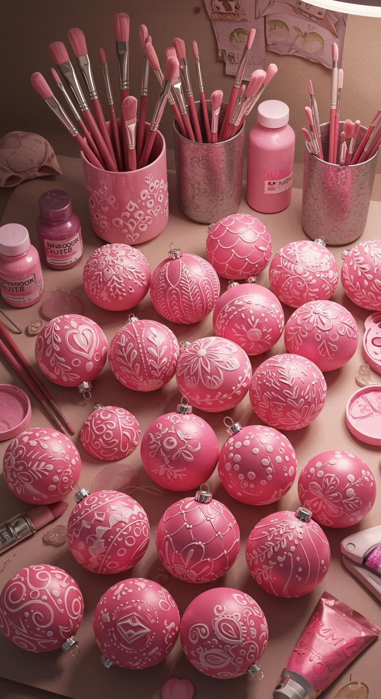 Nothing beats the charm of hand-painted ornaments. Grab some clear or white balls and mix up some pink paint—it’s your chance to go wild with polka dots, stripes, or even cute holiday patterns. This is such a sweet family activity and adds a personal touch that just can’t be bought. Plus, it’s super budget-friendly and guarantees every ornament has its own little story, making your tree totally one-of-a-kind.
