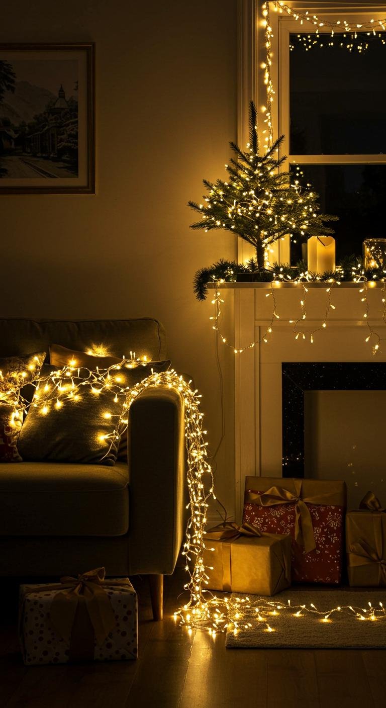 Soft, warm white string lights are a total game-changer for holiday spaces. Drape them over furniture, trees, or walls for that gentle glow that instantly makes everything feel magical.