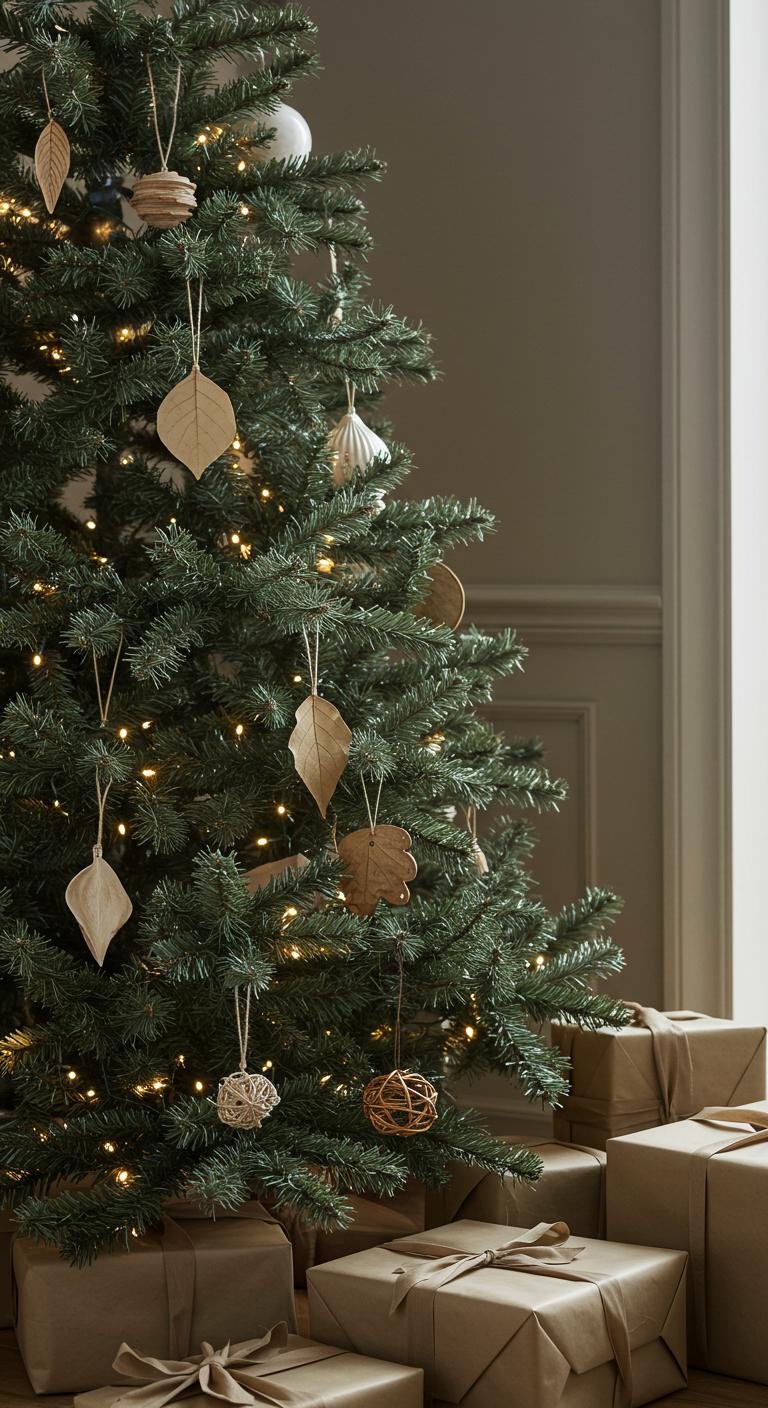 For a more serene vibe, choose nature-inspired decorations in earthy tones—wood, botanical ornaments, dried flowers, and feathers create a calm and elegant feel that’s easy on the eyes.