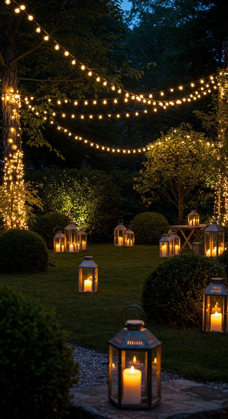 Don’t forget outside—string lights draped over trees, walkways, or decks create such a welcoming holiday atmosphere. Lanterns with candles add even more charm under the stars.