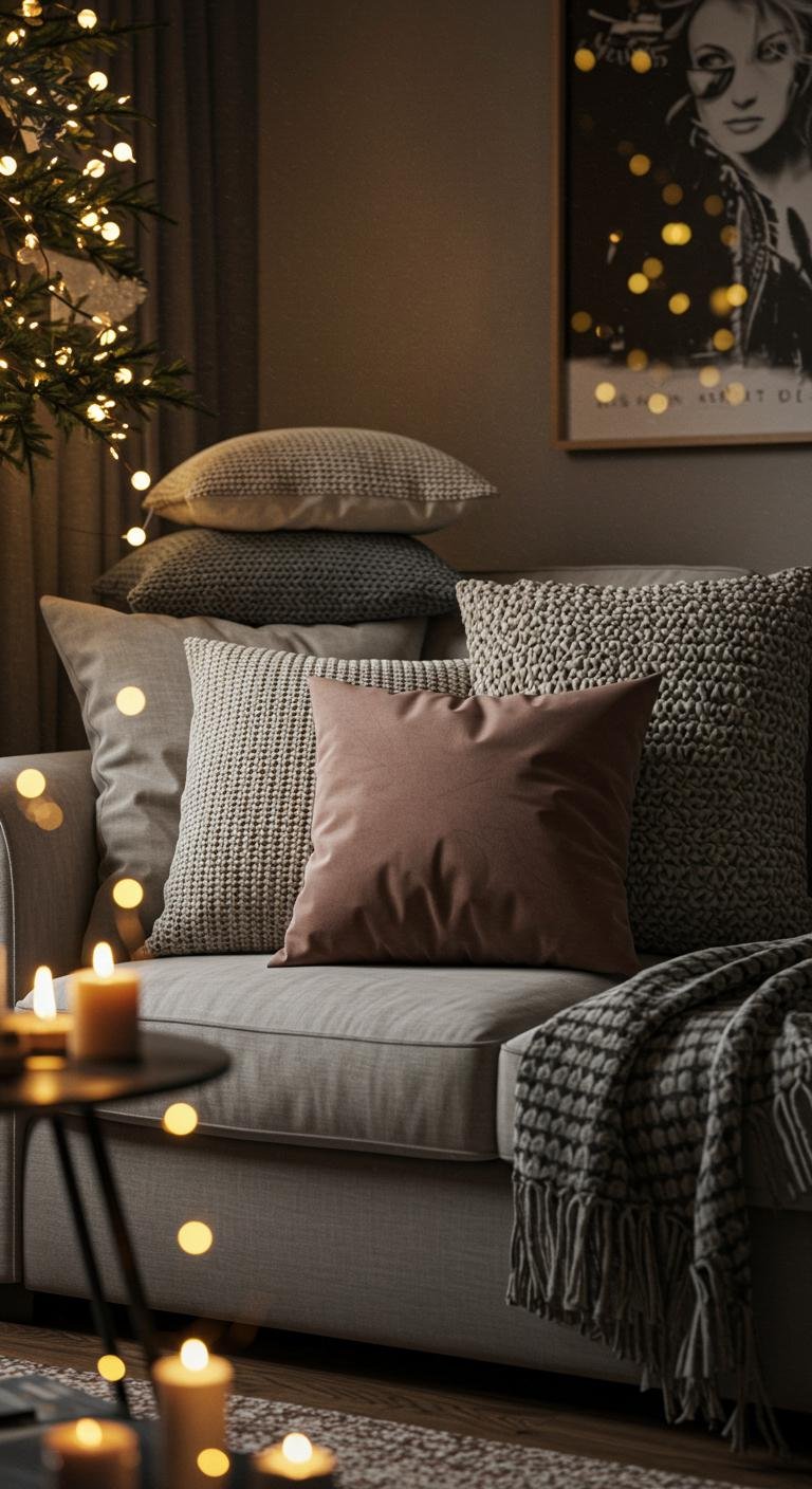 And if you’re feeling crafty, try sewing your own pillow covers! Fabric remnants from your local craft store are perfect for creating festive patterns or mixing textures. Layering different fabrics not only looks amazing but makes your living room the ultimate cozy retreat during chilly holiday nights.